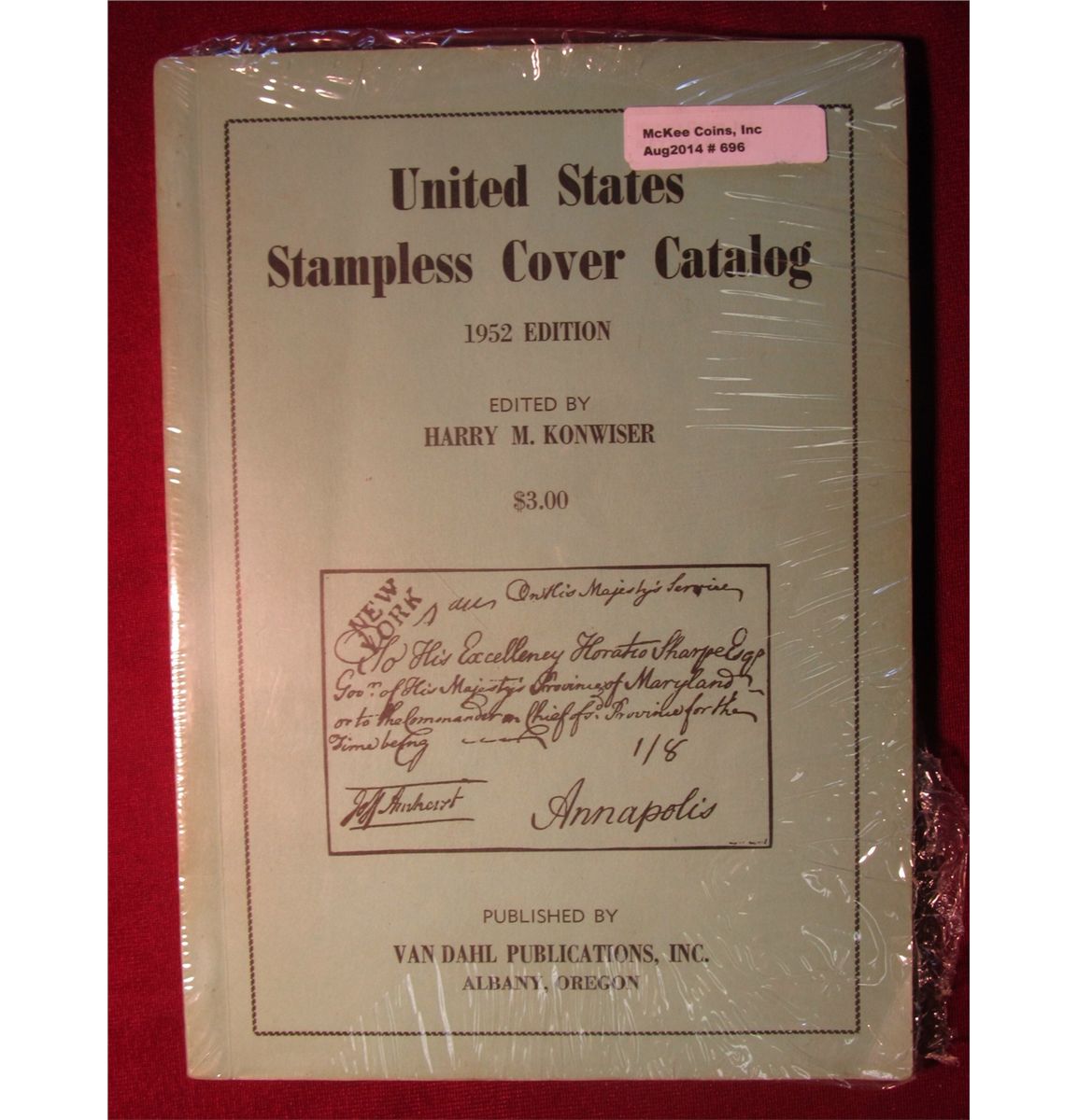 696. "United States Stampless Cover Catalog 1952 Edition" Edited By Harry M. Konwiser, Published By Van Dahl Publications, Inc. Albany, Oregon.