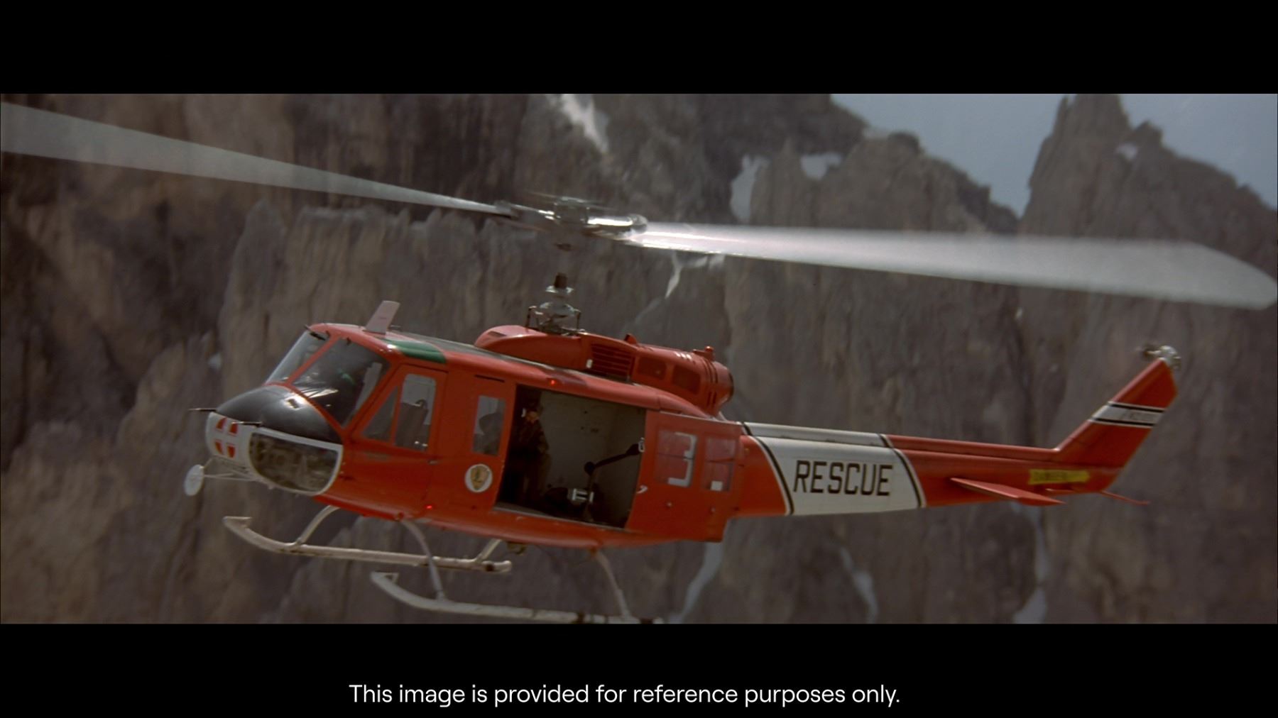 CLIFFHANGER (1993) - Rocky Mountain Rescue Helicopter Model Miniature Replica - A replica of a Rocky Mountain rescue helicopter model miniature from the production of Renny Harlin's Cliffhanger. The rangers used their rescue helicopter throughout the film until it crashed at the finale.