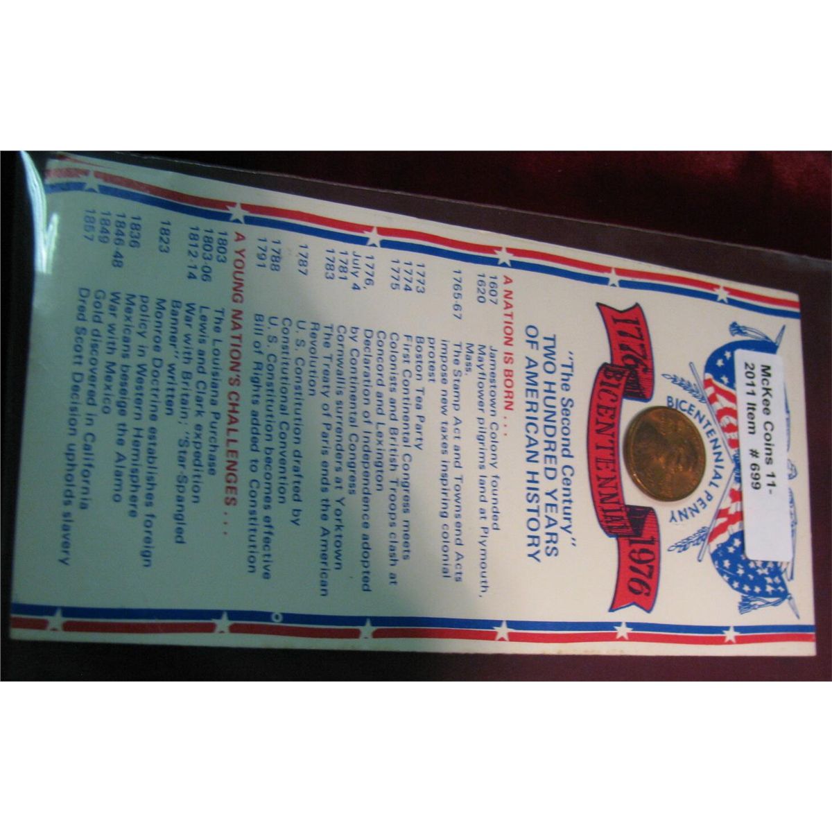 699. 1776-1976 Bicentennial Counterstamped Cent with Liberty Bell and Map.