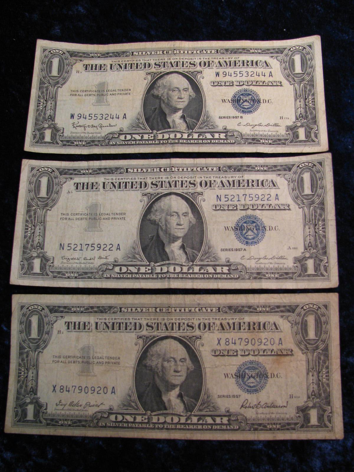 699. 1957 Set of $1 U.S. Silver Certificates. Series 1957, 57A, & 57B. Circ.