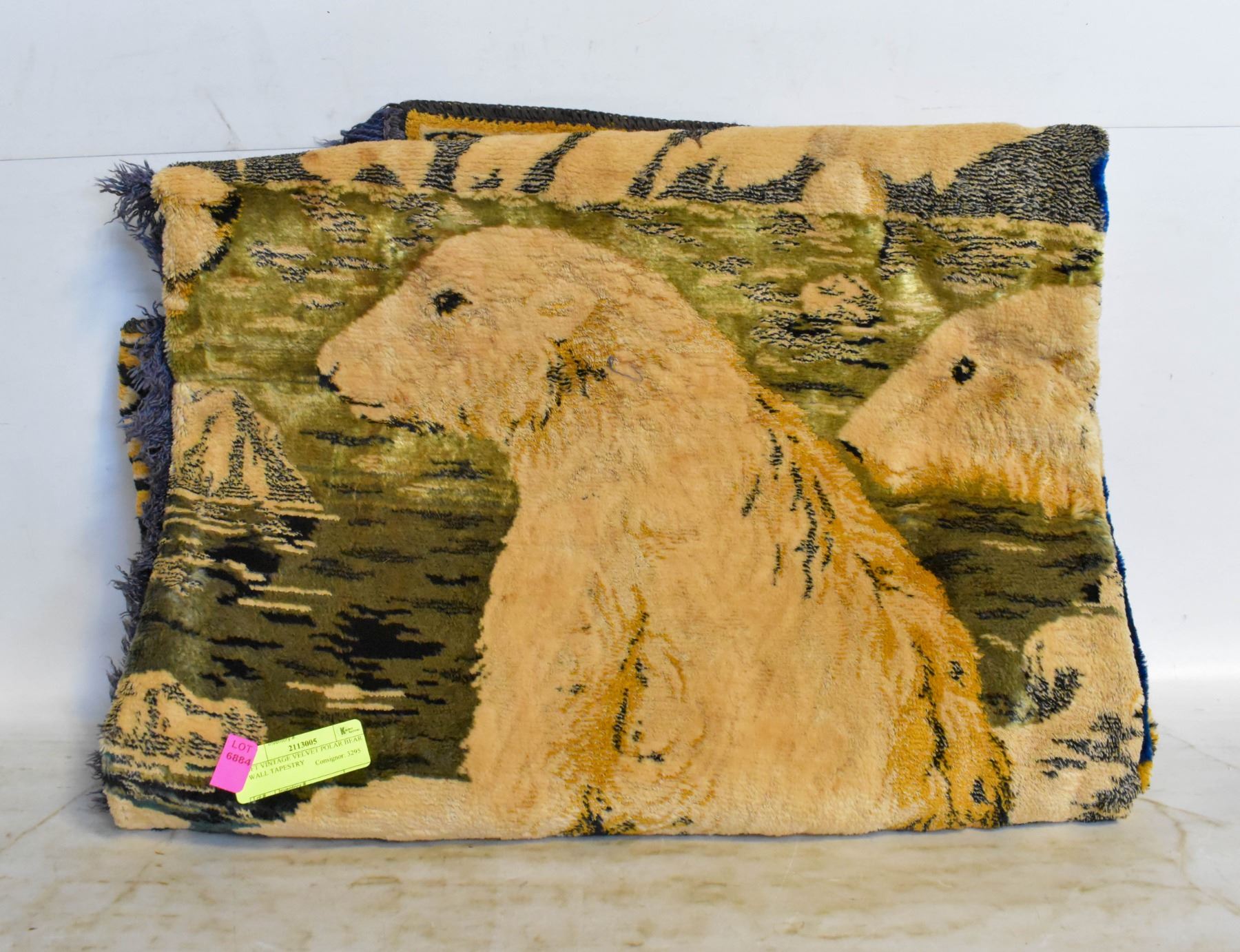 6FT VINTAGE VELVET POLAR BEAR WALL TAPESTRY