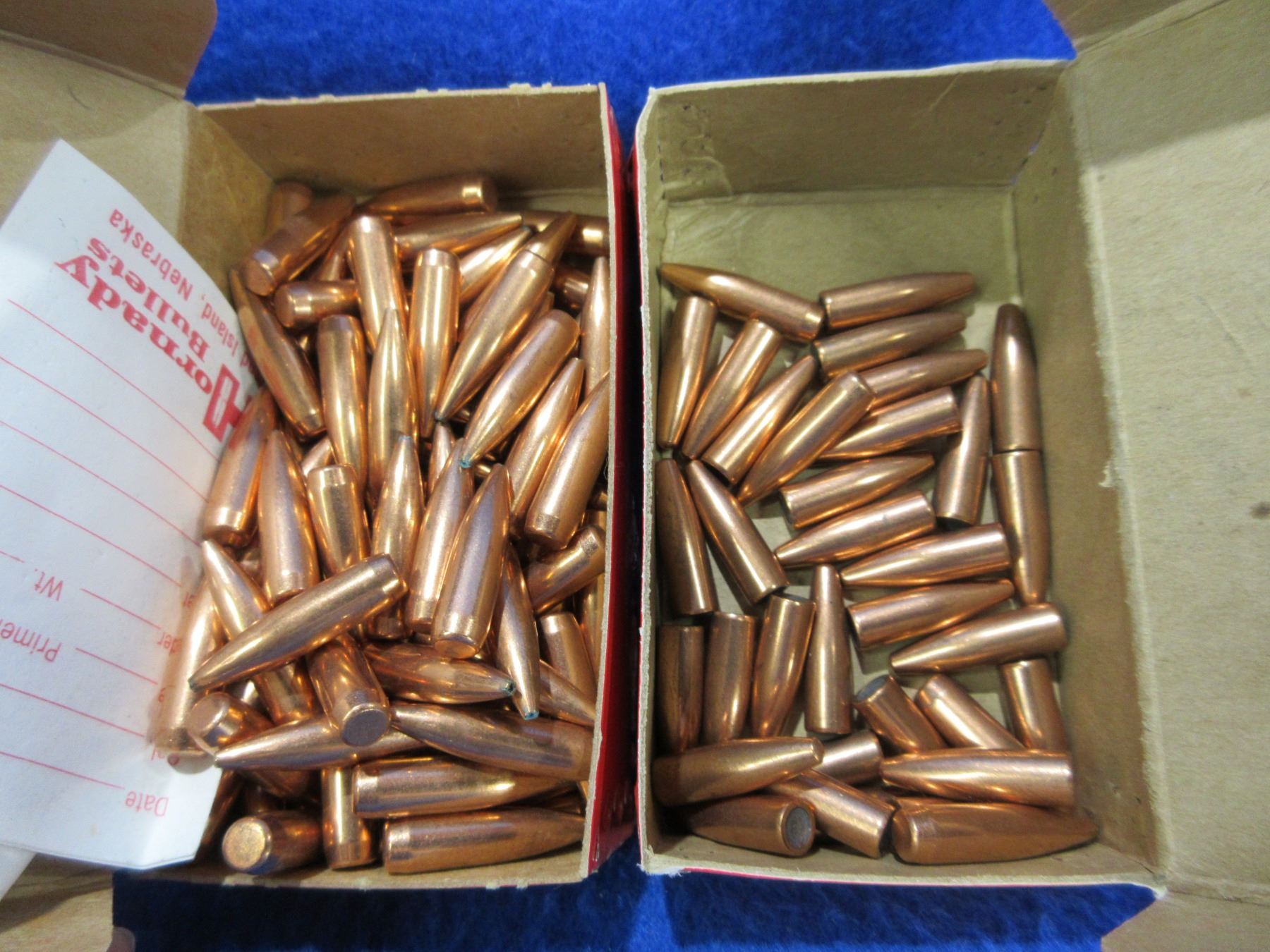 6MM Cal. .243" Hornady Bullets - Box of 96 (87gr BTHP), Box of 34 (80gr FMJ)