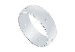 Symbol of commitment & togetherness this graceful ring have five brilliant-cut diamonds surrounded the band. Made in rich platinum with 6mm regular-fit half round wedding band & has a total weight (TDW) of 0.05 carat. This band thickness is about 1.5mm.