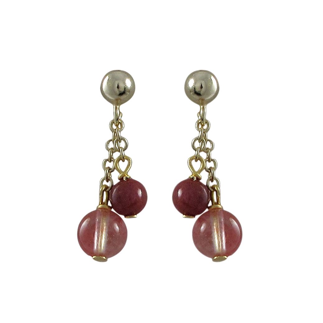 6Mm Cherry And 4Mm Pink Quartz Semi Precious Ball On Gold Tone Sterling Silver Ball Post Earrings -0.75"