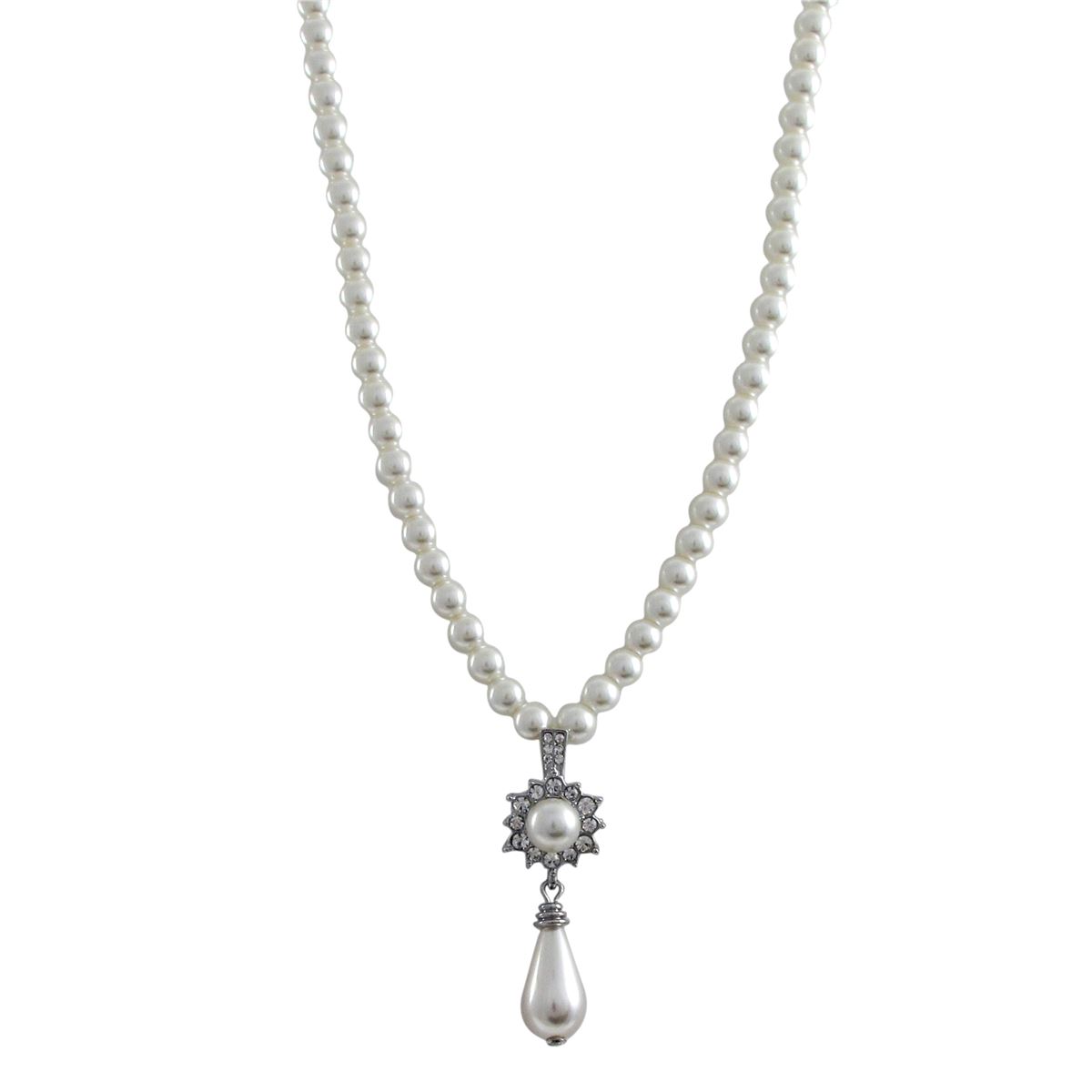 6Mm Glass Faux Pearl With Crystals And Pearl Tear Drop Design- 17"