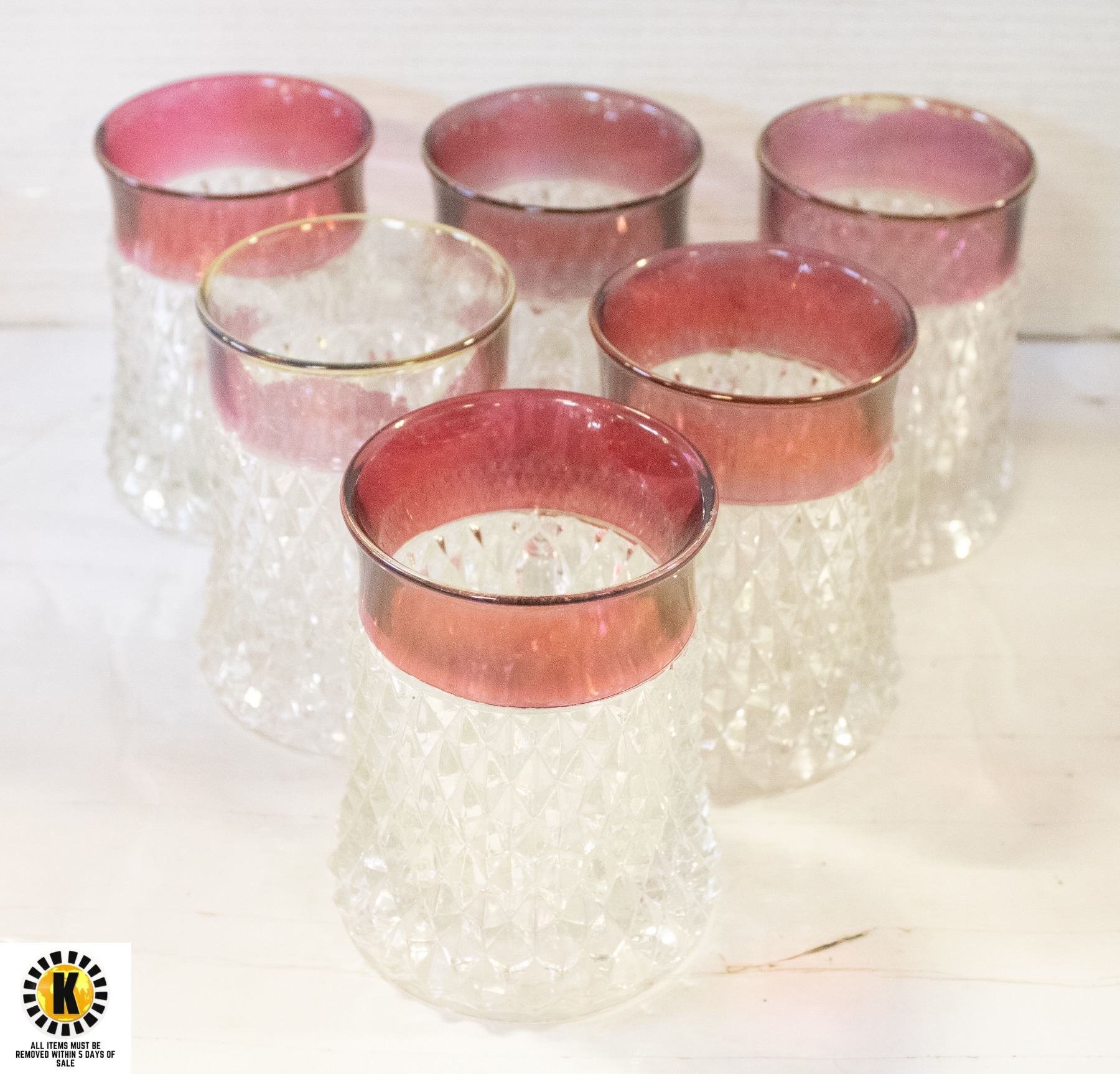 6PC INDIANA GLASS DIAMOND POINT RUBY