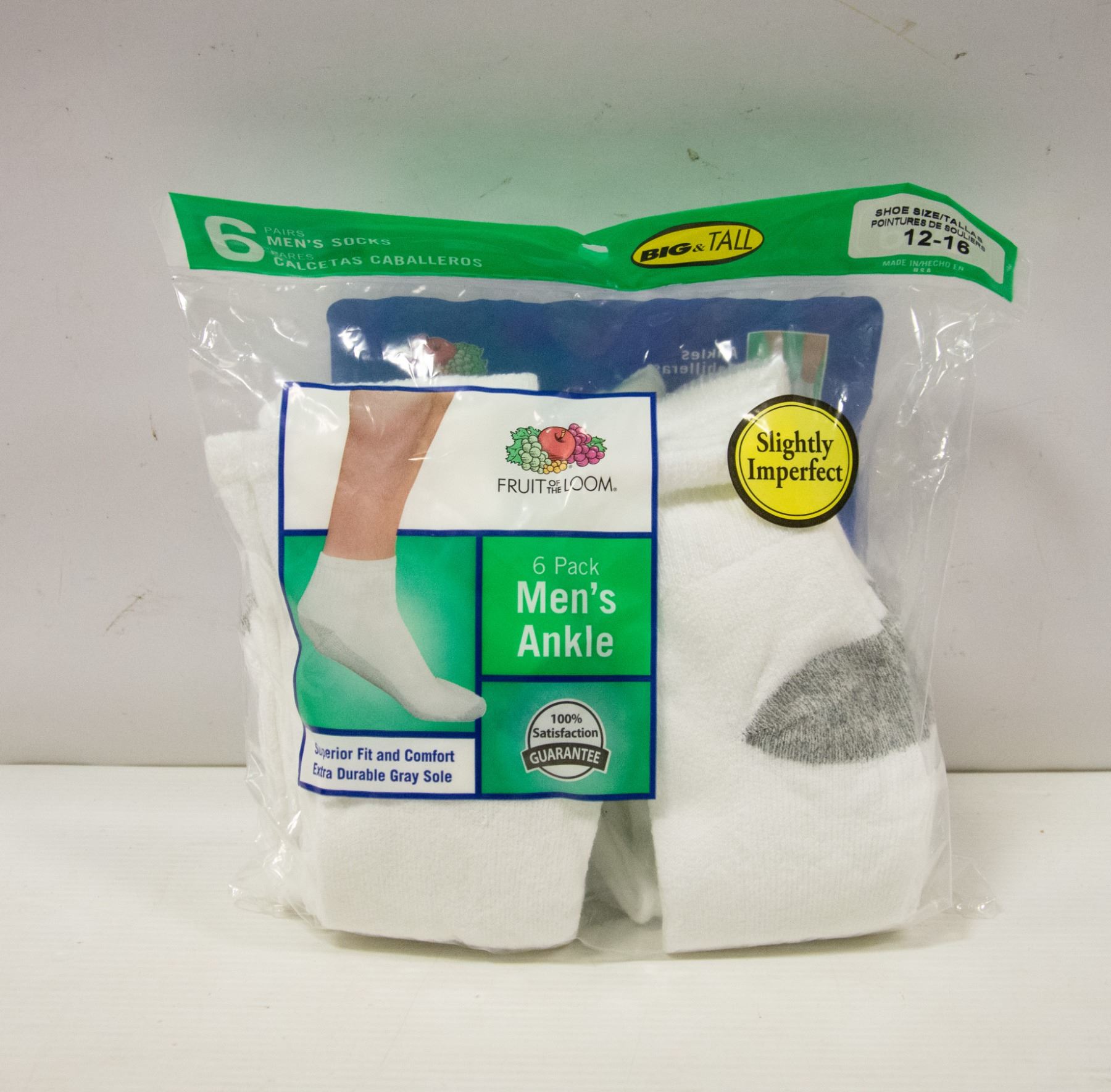 6PK ANKLE SOCKS ,SIZE 12-16, WHITE
