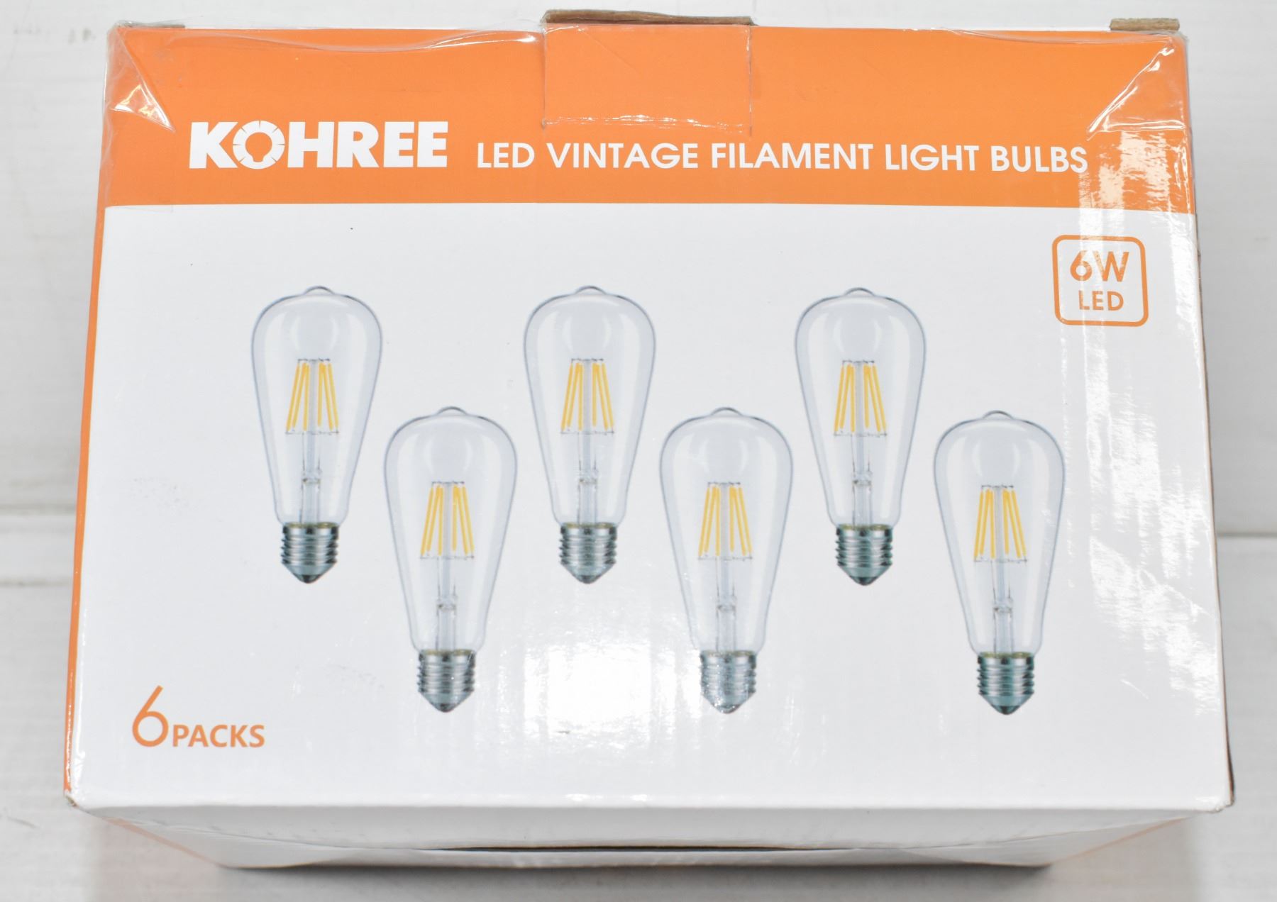 6PK BOX OF LED VINTAGE FILIMENT BULBS - 6W CLEAR
