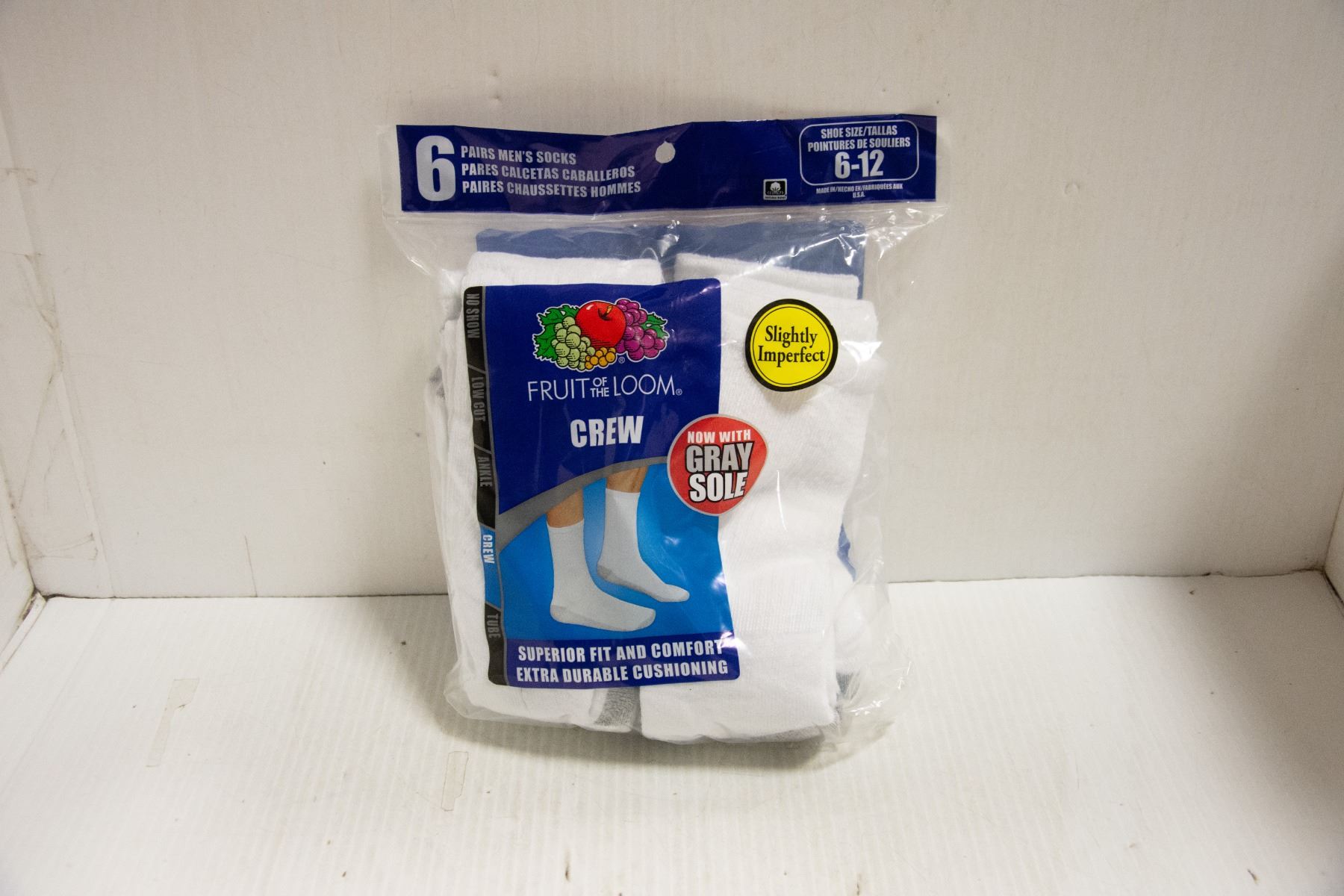 6PK CREW SOCKS ,SIZE 12-16, WHITE