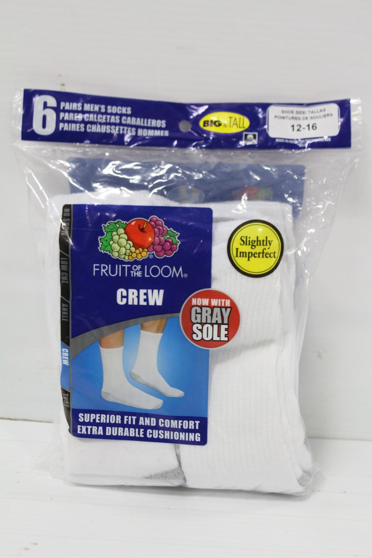6PK CREW SOCKS ,SIZE 12-16, WHITE