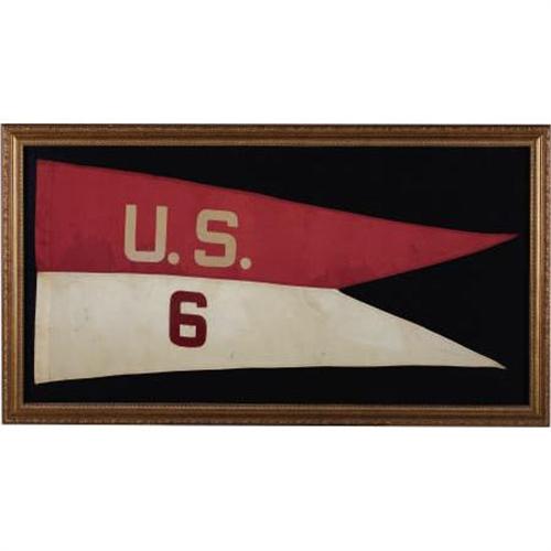 <B>6TH US CAVALRY GUIDON, TEXAS CIRCA 1875</B></I> - The 6th US Cavalry regiment was active 1867 to 1885 on the Texas frontier it fought over ten engagements with Comanche as well as Apache Indians. Many of the 6th Cavalry Troopers received Congressional Medals of Honor for bravery in these battles along the Texas frontier. An excellent swallow tail Cavalry guidon size 22" x 48”; framed.<BR><BR><B>Condition:</B></I>Very good condition; not examined out of frame.<BR><BR><b>Shipping:</b> Framed - with Glass, Large (<a target="_blank" href="http://www.heritageauctions.com/common/shipping.php">view shipping information</a>)