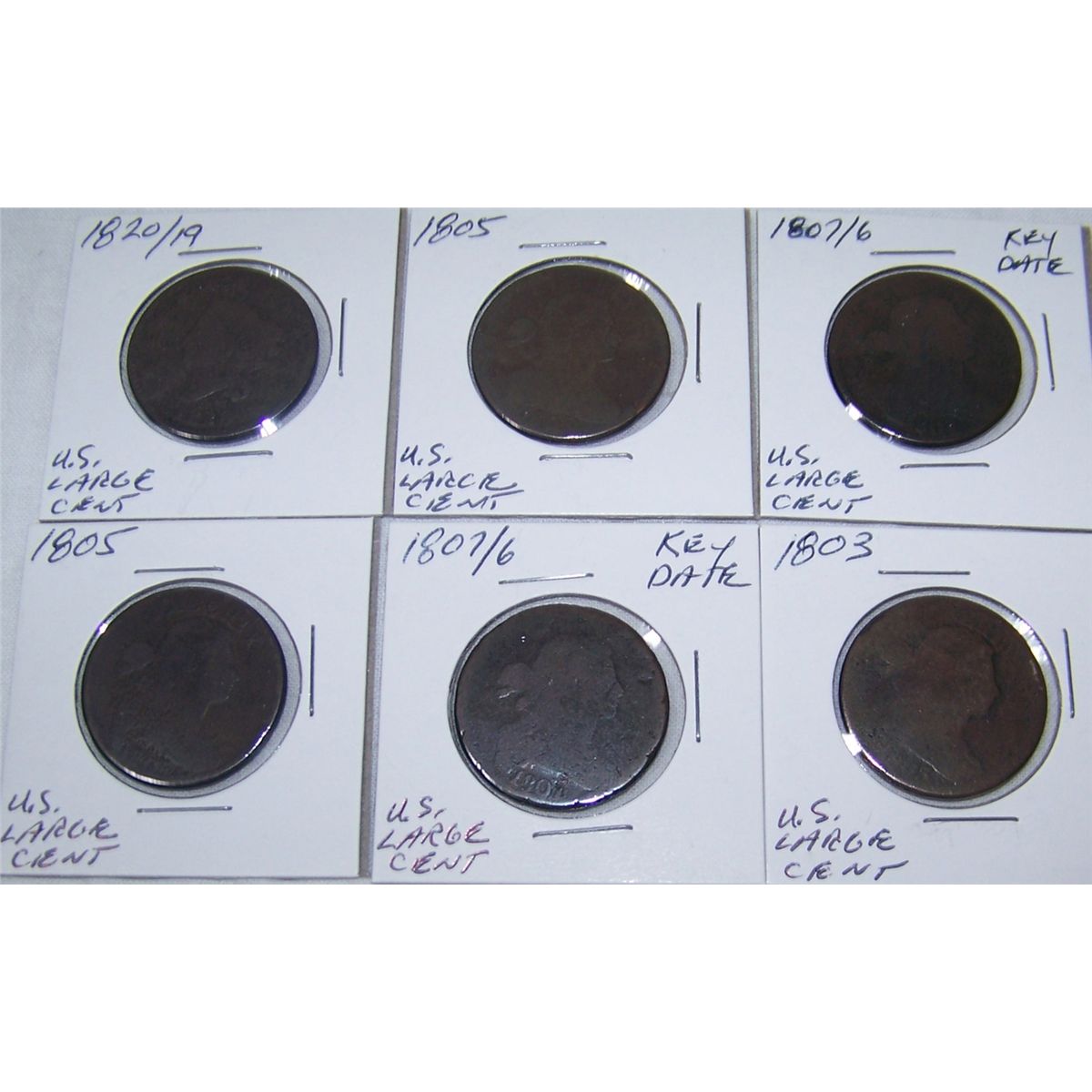 (6X$) KEY DATE VERY EARLY U.S LARGE CENTS 1803,(2)1805,(2) (2)1807/6 1820/19