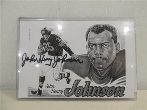 6X4 FOOTBALL PRINT AUTOGRAPHED JOHN HENRY JOHNSON. INCLUDES COA FROM PRIMETIME COLLECTIONS. AS SHOWN. VIEW PICTURE FOR DETAIL. PLEASE BE ADVISED, AND INFORMED REGARDING SIGNATURES OR AUTOGRAPHS THAT WE SELL AT AUCTION: WE ARE NOT AUTHENTICATORS, AND WE DO NOT AUTHENTICATE, OR VALIDATE ANY AUTOGRAPHS OR SIGNATURES THAT WE OFFER AT AUCTION. SOME AUTOGRAPHS OR SIGNATURES MAY COME WITH AN AUTHENTICATION FROM ANY ONE OF LITERALLY HUNDREDS OF AUTHENTICATORS ACROSS THE COUNTRY, AND AROUND THE WORLD. WE DO NOT ENDORSE ANY AUTHENTICATOR, NOR DO WE GUARANTEE THAT ANY AUTOGRAPH OR SIGNATURE IS AUTHENTIC, OR THAT IT WILL PASS AUTHENTICATION BY ANY AUTHENTICATOR. ALL AUTOGRAPHS OR SIGNATURES ARE SOLD