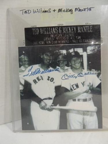 6X7 TED WILLIAMS & MICKEY MANTLE BASEBALL PHOTO AUTOGRAPH NO COA. AS SHOWN. VIEW PICTURE FOR DETAIL.