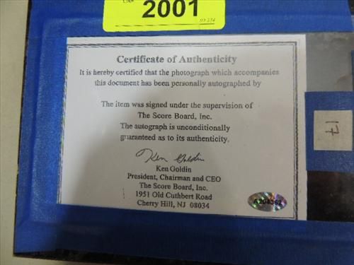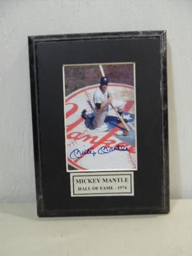 6X8 PLAQUE BASEBALL PHOTO AUTOGRAPH MICKEY MANTLE. INCLUDES COA FROM SCORE BOARD INC #A204362. AS SHOWN. VIEW PICTURE FOR DETAIL. PLEASE BE ADVISED, AND INFORMED REGARDING SIGNATURES OR AUTOGRAPHS THAT WE SELL AT AUCTION: WE ARE NOT AUTHENTICATORS, AND WE DO NOT AUTHENTICATE, OR VALIDATE ANY AUTOGRAPHS OR SIGNATURES THAT WE OFFER AT AUCTION. SOME AUTOGRAPHS OR SIGNATURES MAY COME WITH AN AUTHENTICATION FROM ANY ONE OF LITERALLY HUNDREDS OF AUTHENTICATORS ACROSS THE COUNTRY, AND AROUND THE WORLD. WE DO NOT ENDORSE ANY AUTHENTICATOR, NOR DO WE GUARANTEE THAT ANY AUTOGRAPH OR SIGNATURE IS AUTHENTIC, OR THAT IT WILL PASS AUTHENTICATION BY ANY AUTHENTICATOR. ALL AUTOGRAPHS OR SIGNATURES ARE SOLD