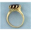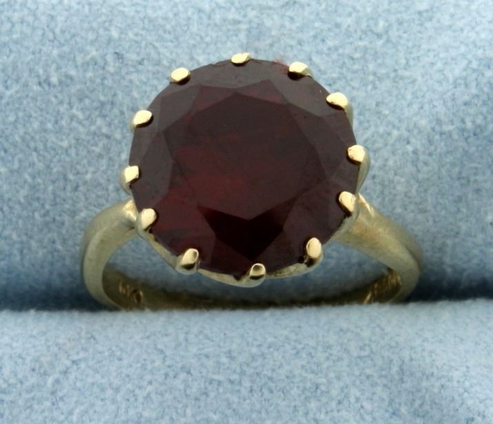 In 10k yellow gold. Contains a lab ruby with excellent deep red color and clarity. Size 6 3/4. 4.7g.
