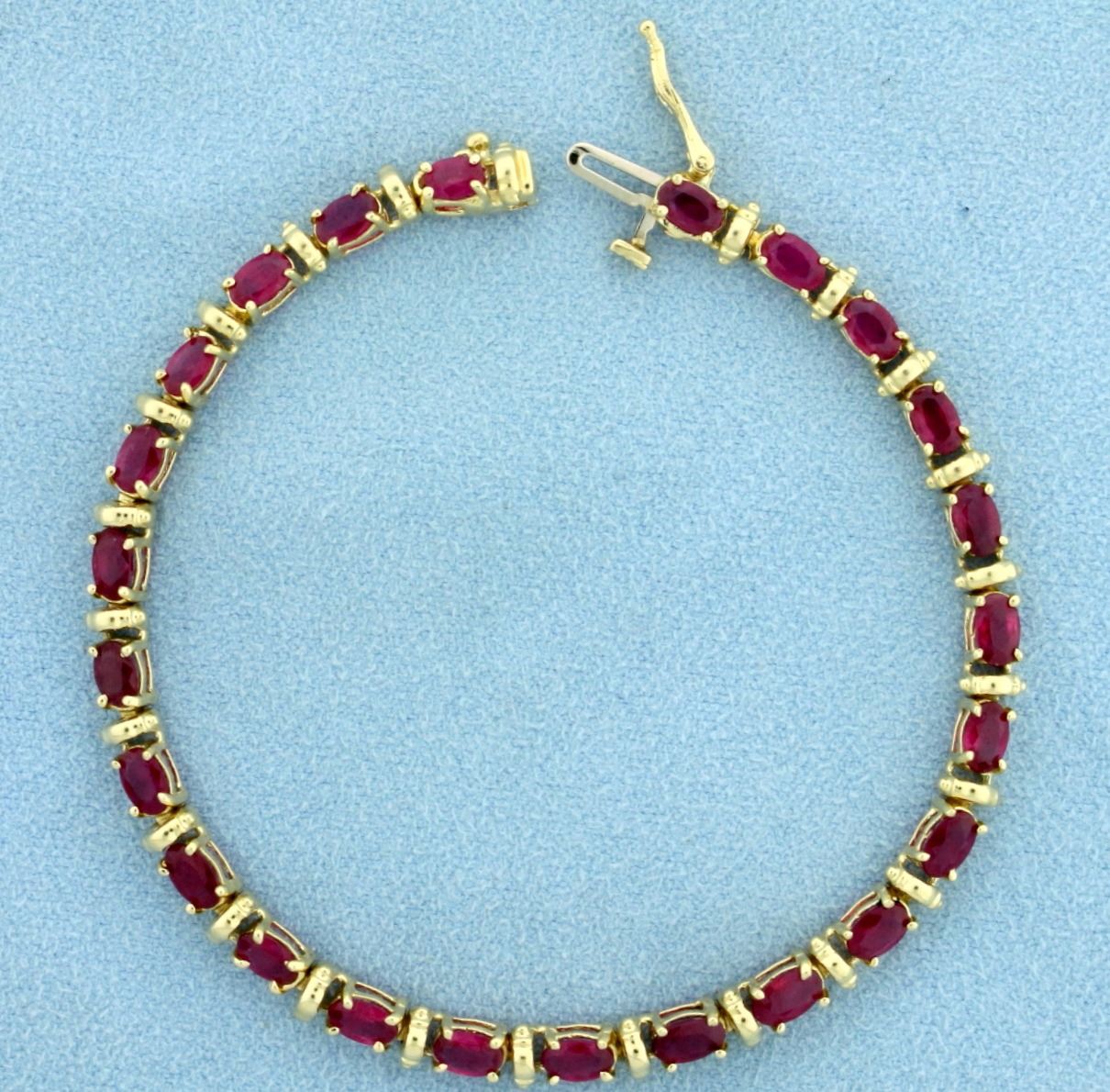 In 14k yellow gold. Contains twenty four high quality natural oval shaped .25ct rubies with bright ruby red color and excellent clarity. 7" long with safety clasps. 10.2g.