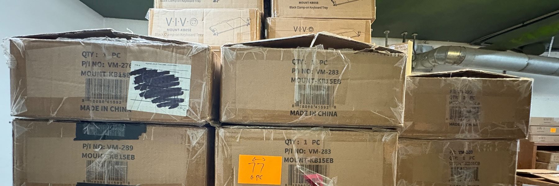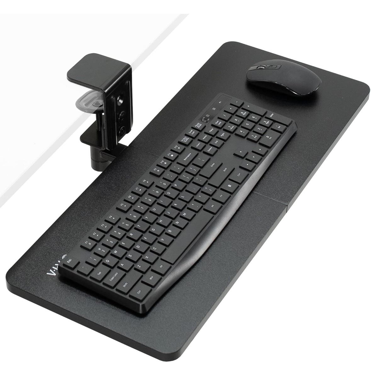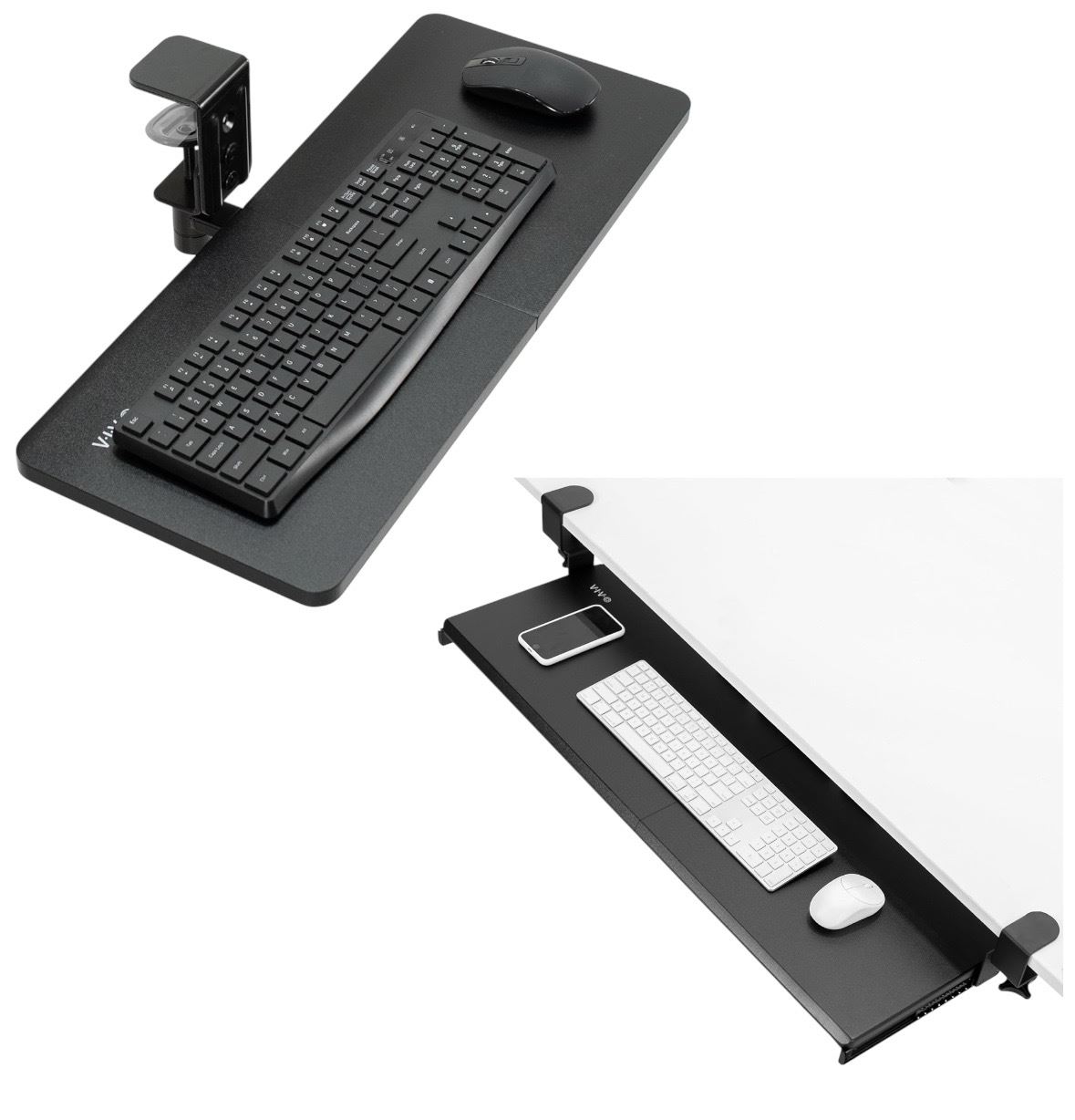 6pc - 4 VIVO black clamp-on extra long keyboard trays MOUNT-KB15EB & 2pc black single clamp rotating keyboard tray MOUNT-KB01CB (refurbished in boxes) total lot retail $506