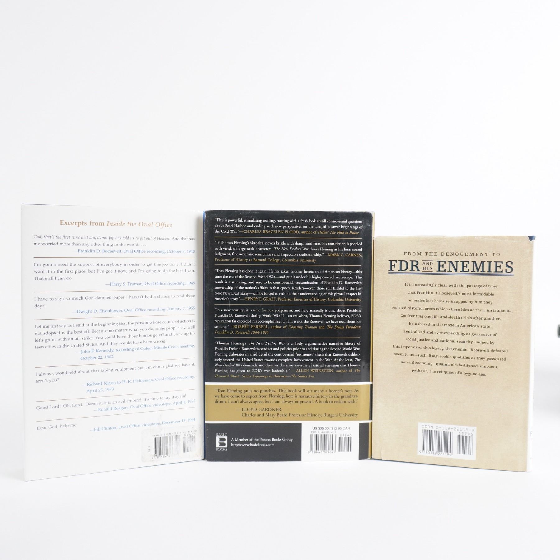 This collection of six hardcover books provides an in-depth look at the American presidency, military leadership, and political challenges. FDR and His Enemies examines Franklin D. Roosevelts battles with opposition forces, while The New Dealers War explores his role in World War II. Inside the Oval Office offers a behind-the-scenes look at presidential decision-making. West Point in the Making of America highlights the military academys impact on U.S. leadership. The American President provides insights into the nations highest office, and The History of the American Presidency chronicles the evolution of presidential power. A must-have set for history buffs, political scholars, and collectors. Largest book measures 12"H.