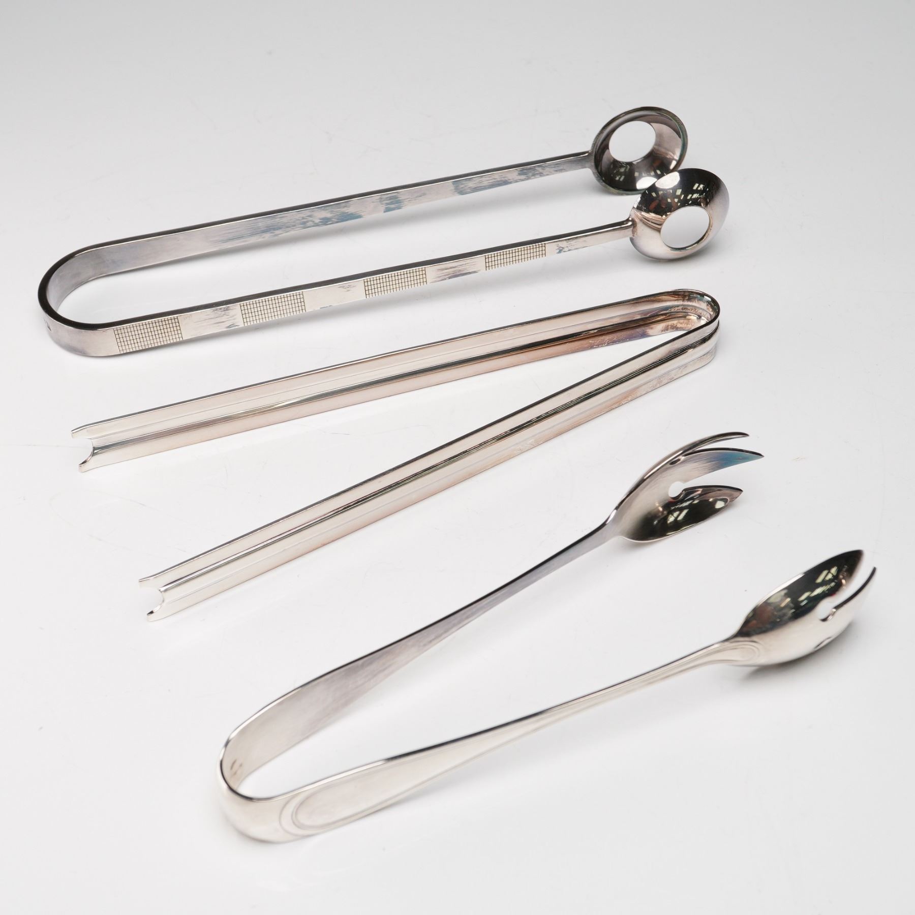 Add instant elegance to your bar with this dazzling 6 piece silver plated set. Featuring Christofles iconic ice bucket, cheese dish and bowl, flat tongs, and serving tray, alongside Ercuis claw tongs and unmarked round ended tongs, this collection blends French luxury with timeless design. Ready to serve in style whether for cocktails, soirees or stunning display. Christofle backstamp. Ercuis backstamp. Largest item measures: 14"L x 11"W x 0.5"H.