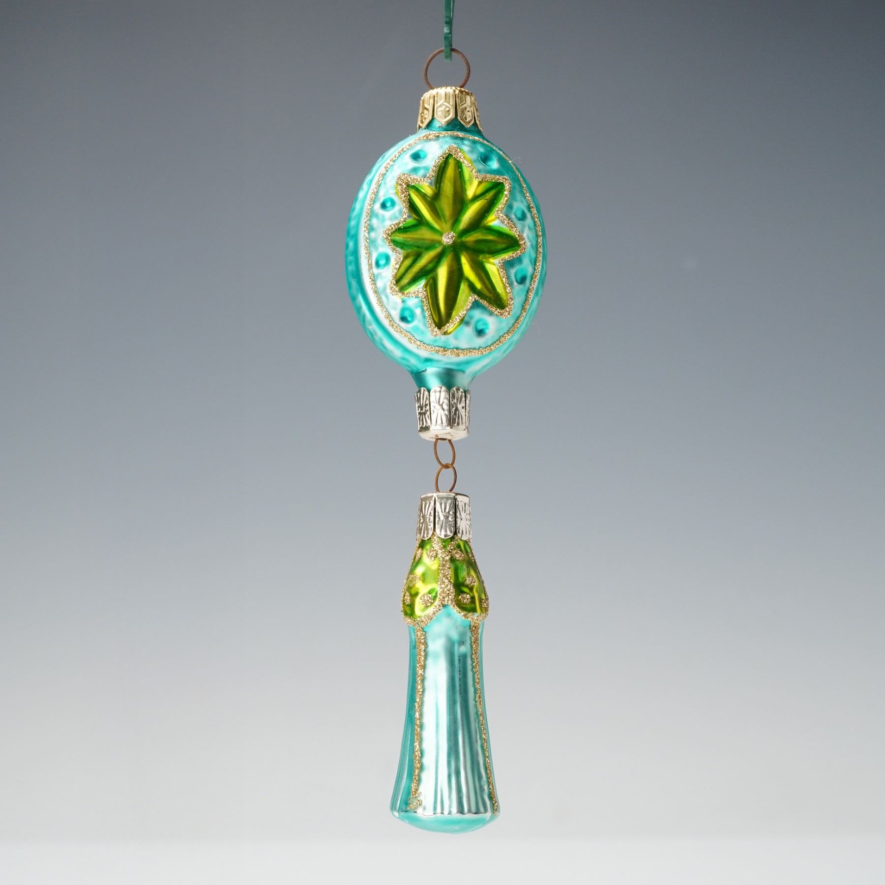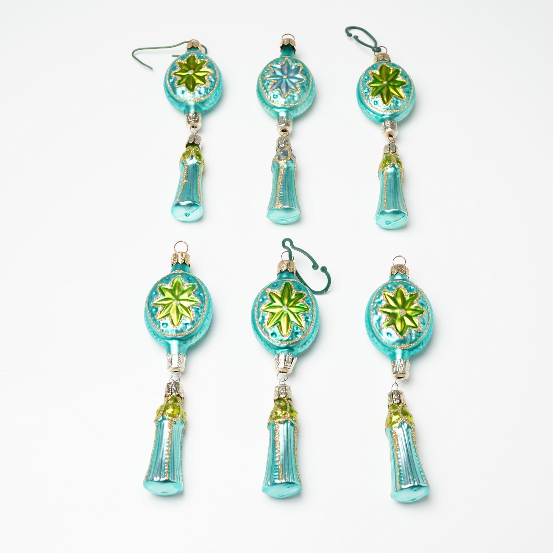 6pc Christopher Radko Ornaments, Turquoise and Green Starburst Design