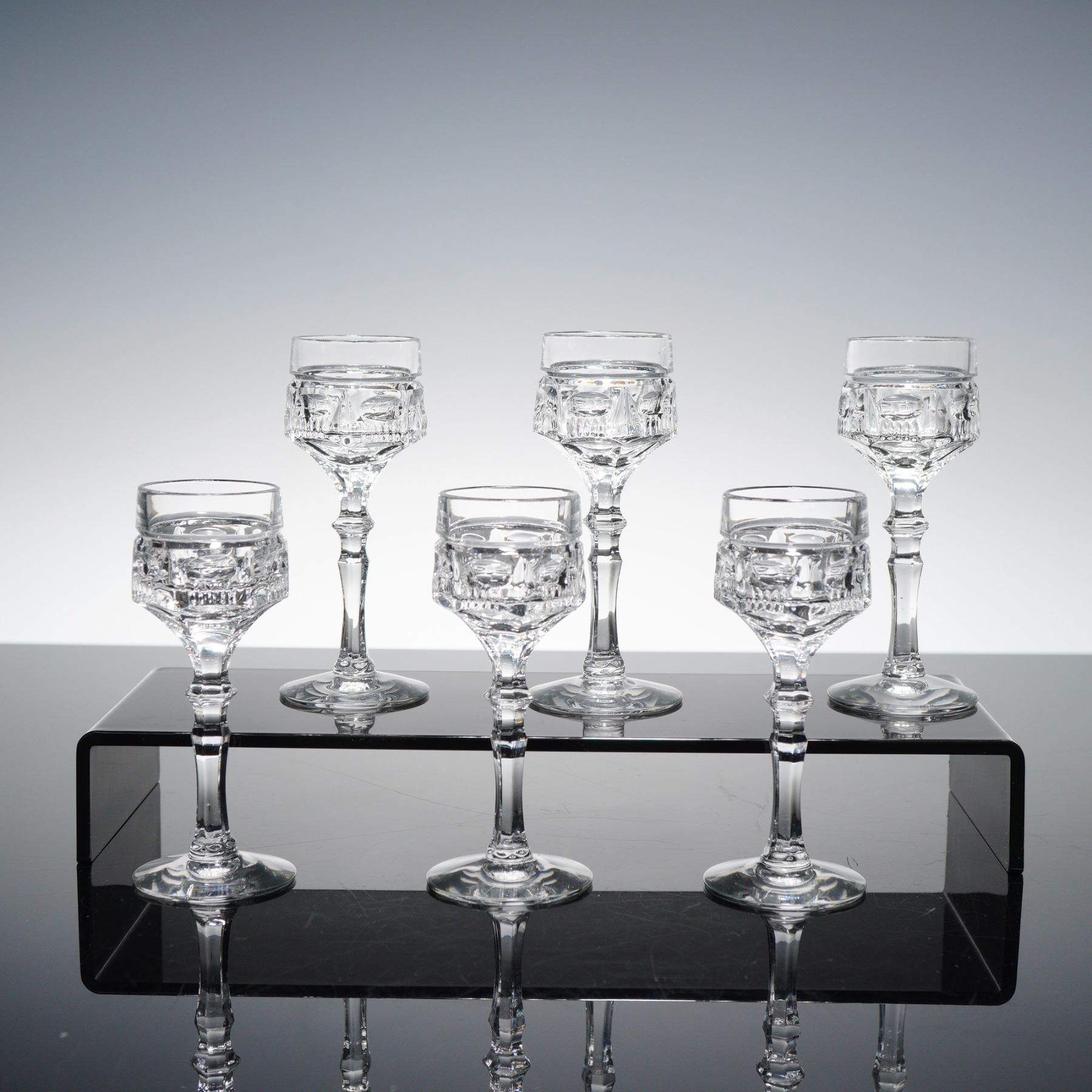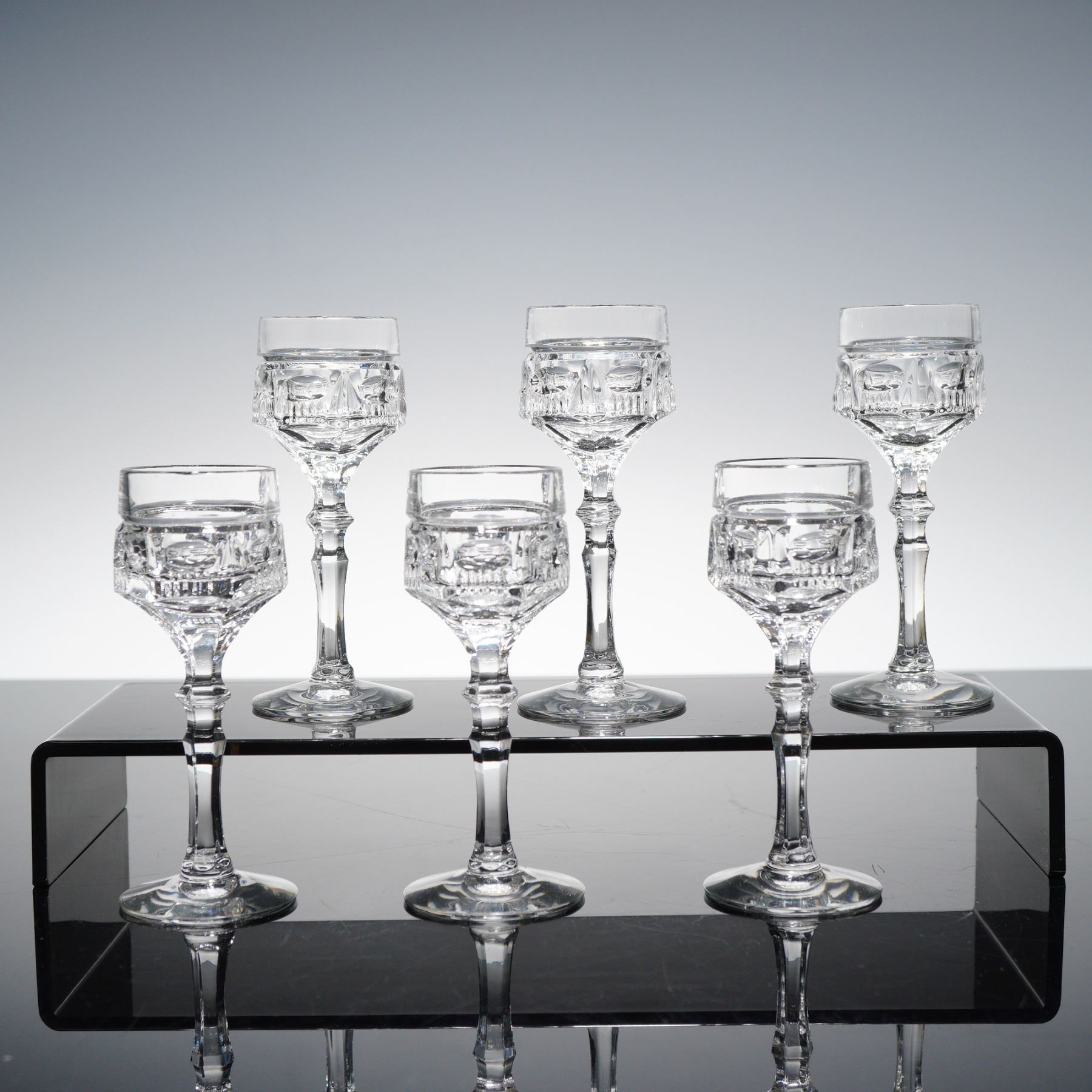 6pc Clear Cut Crystal Cordial Glasses