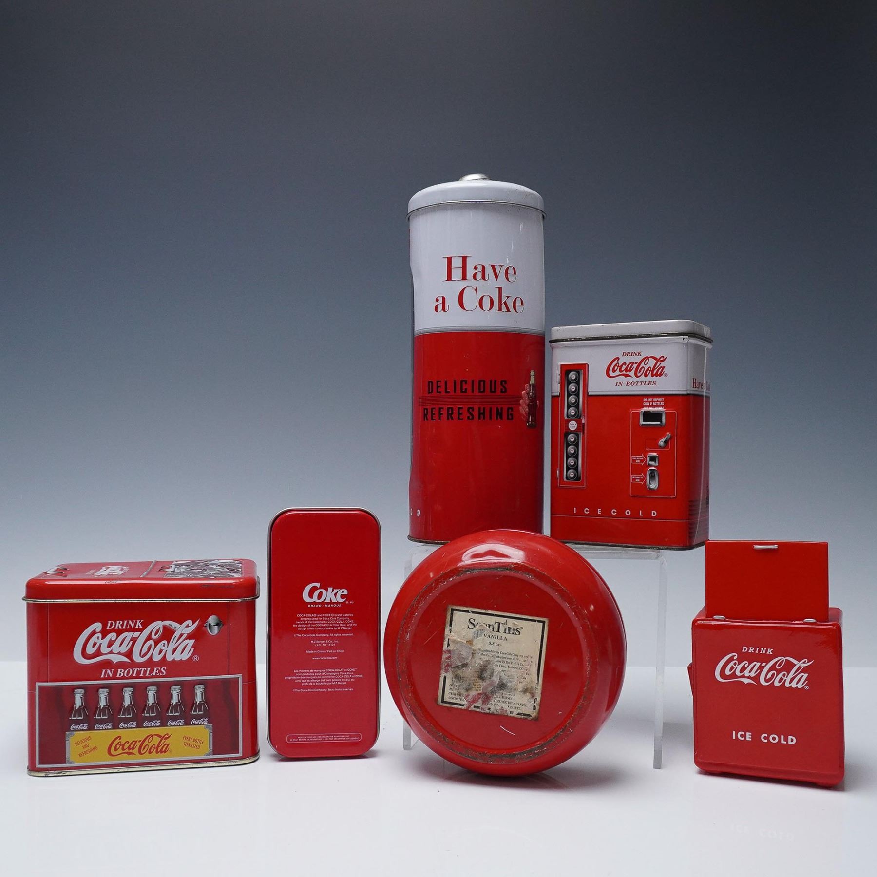 6pc Coca-Cola Collectibles, Mini Vending Machine & Tins
