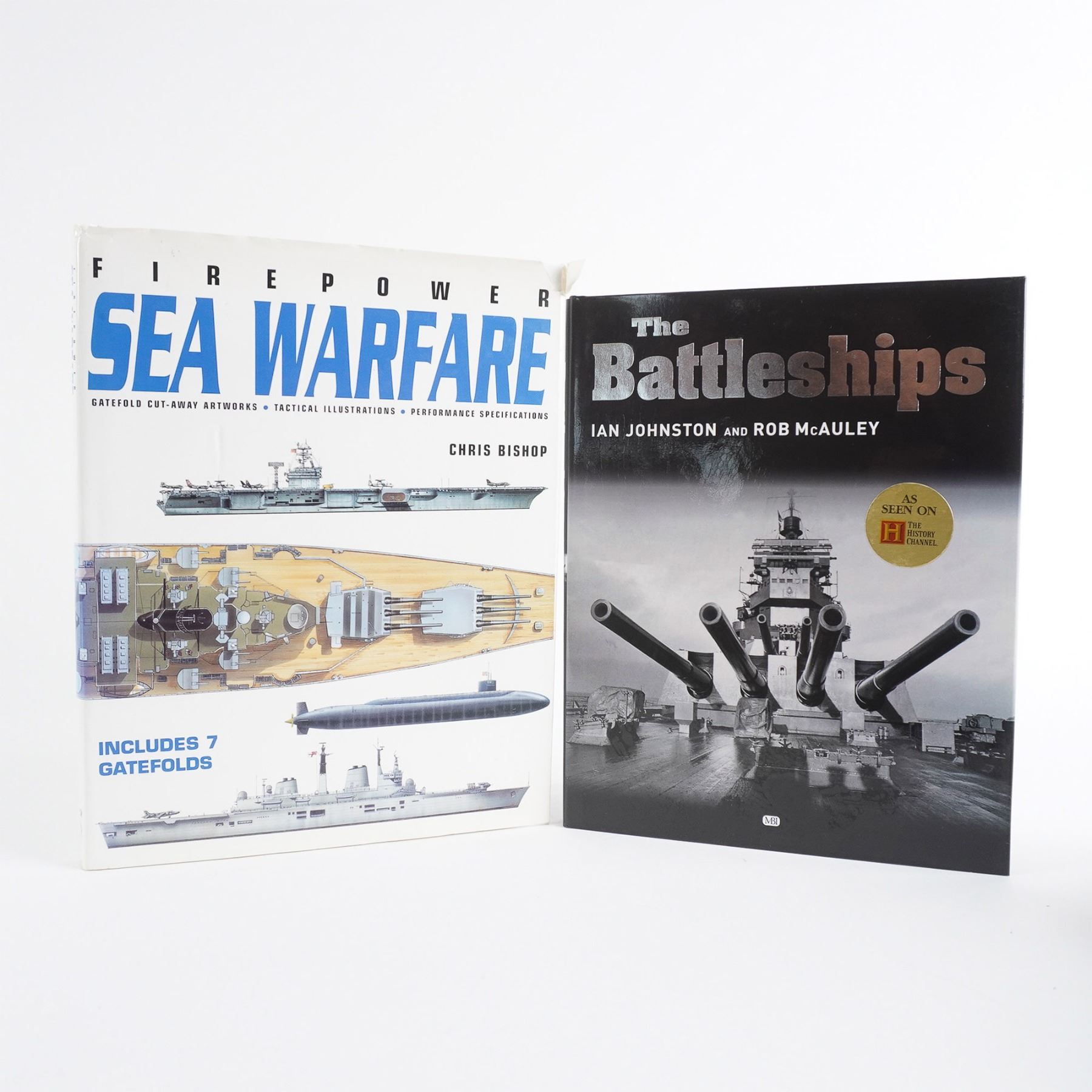 This collection of six hardcover books explores the history and evolution of naval warfare, covering warships, aircraft carriers, and strategic maritime operations. Warships provides an overview of naval vessels, while Q Ships, Commerce Raiders and Convoys by Patrick Stearns delves into the covert tactics of disguised merchant ships. The Aircraft Carrier Victorious and The Aircraft Carrier Intrepid focus on two legendary aircraft carriers and their roles in naval battles. Firepower: Sea Warfare examines the technological advancements and tactics used in maritime combat, and The Battleships by Ian Johnston and Rob McAuley offers an in-depth look at the history and significance of battleships. This set is an excellent addition for military history enthusiasts and collectors interested in naval strategy and warfare. Largest book measures 12"H.