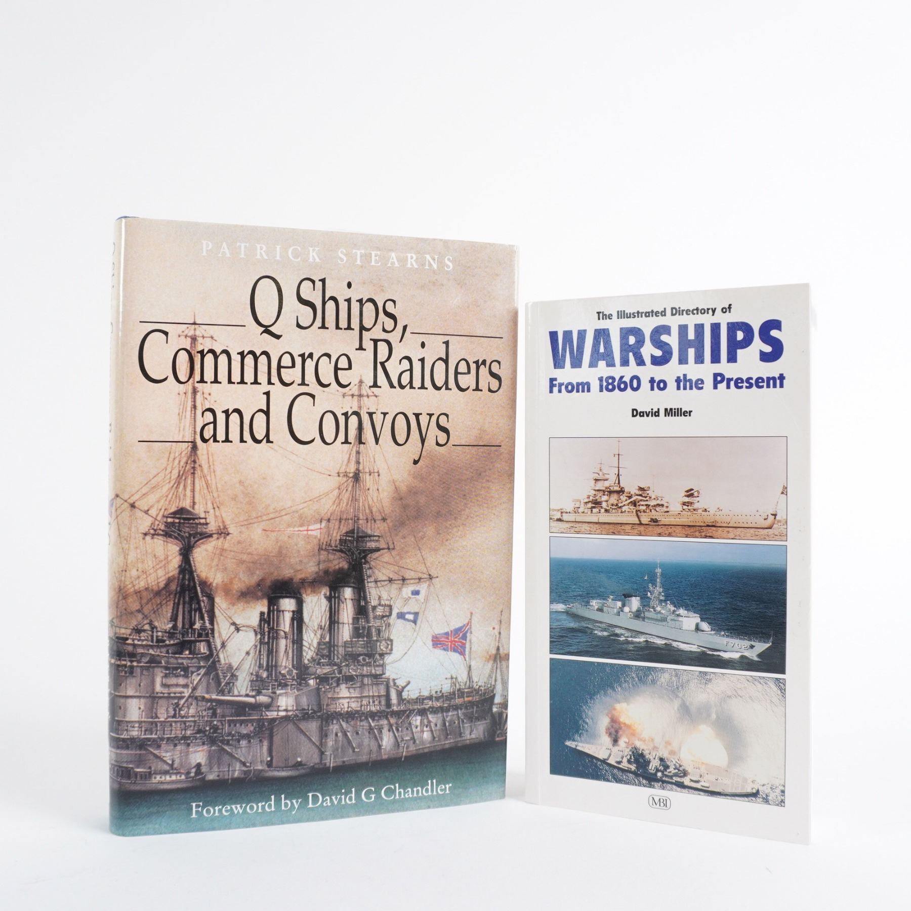 This collection of six hardcover books explores the history and evolution of naval warfare, covering warships, aircraft carriers, and strategic maritime operations. Warships provides an overview of naval vessels, while Q Ships, Commerce Raiders and Convoys by Patrick Stearns delves into the covert tactics of disguised merchant ships. The Aircraft Carrier Victorious and The Aircraft Carrier Intrepid focus on two legendary aircraft carriers and their roles in naval battles. Firepower: Sea Warfare examines the technological advancements and tactics used in maritime combat, and The Battleships by Ian Johnston and Rob McAuley offers an in-depth look at the history and significance of battleships. This set is an excellent addition for military history enthusiasts and collectors interested in naval strategy and warfare. Largest book measures 12"H.