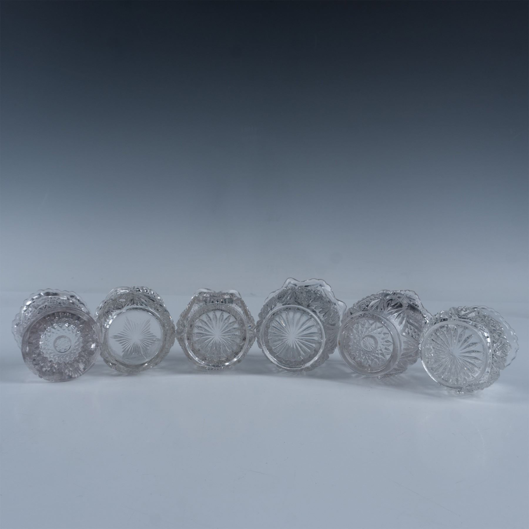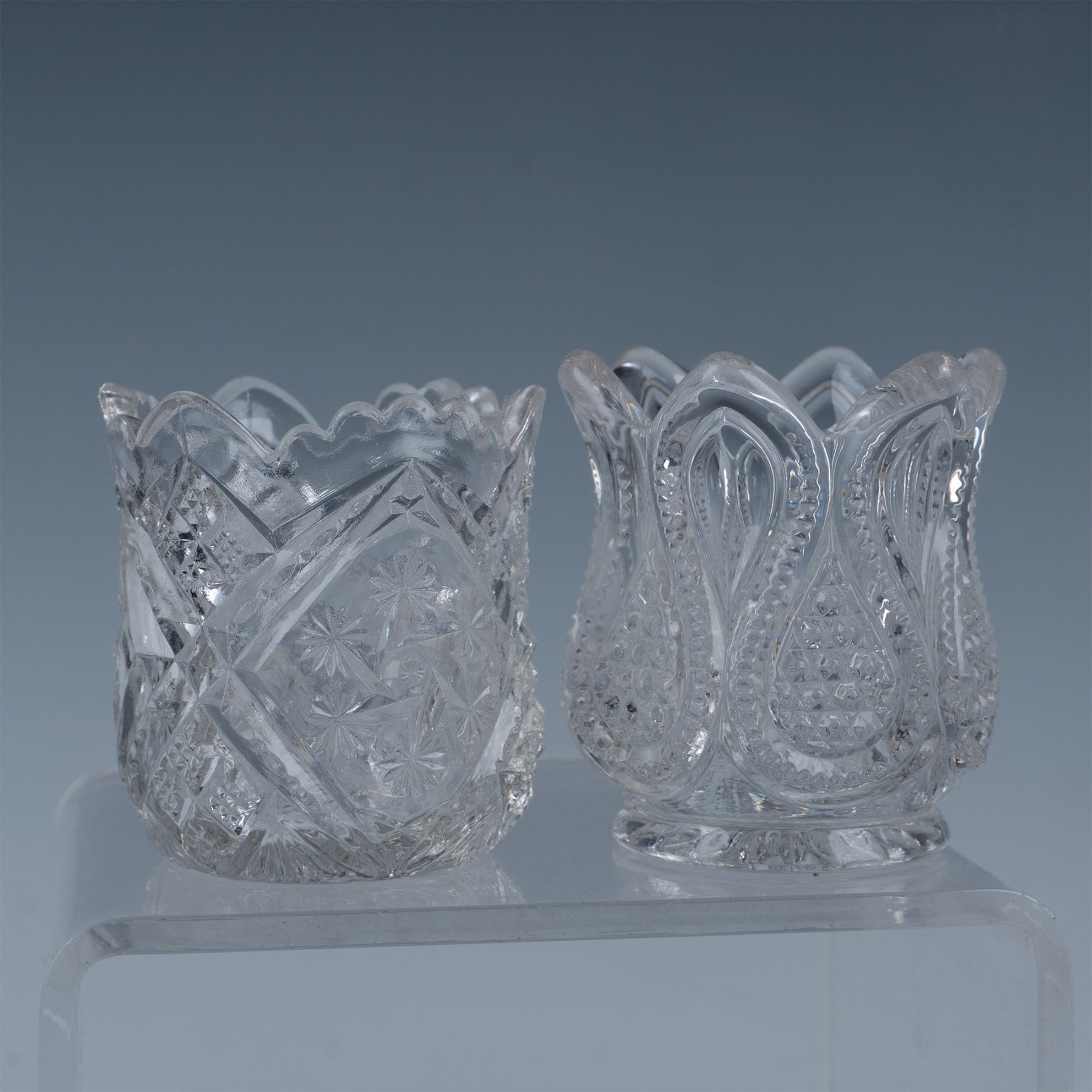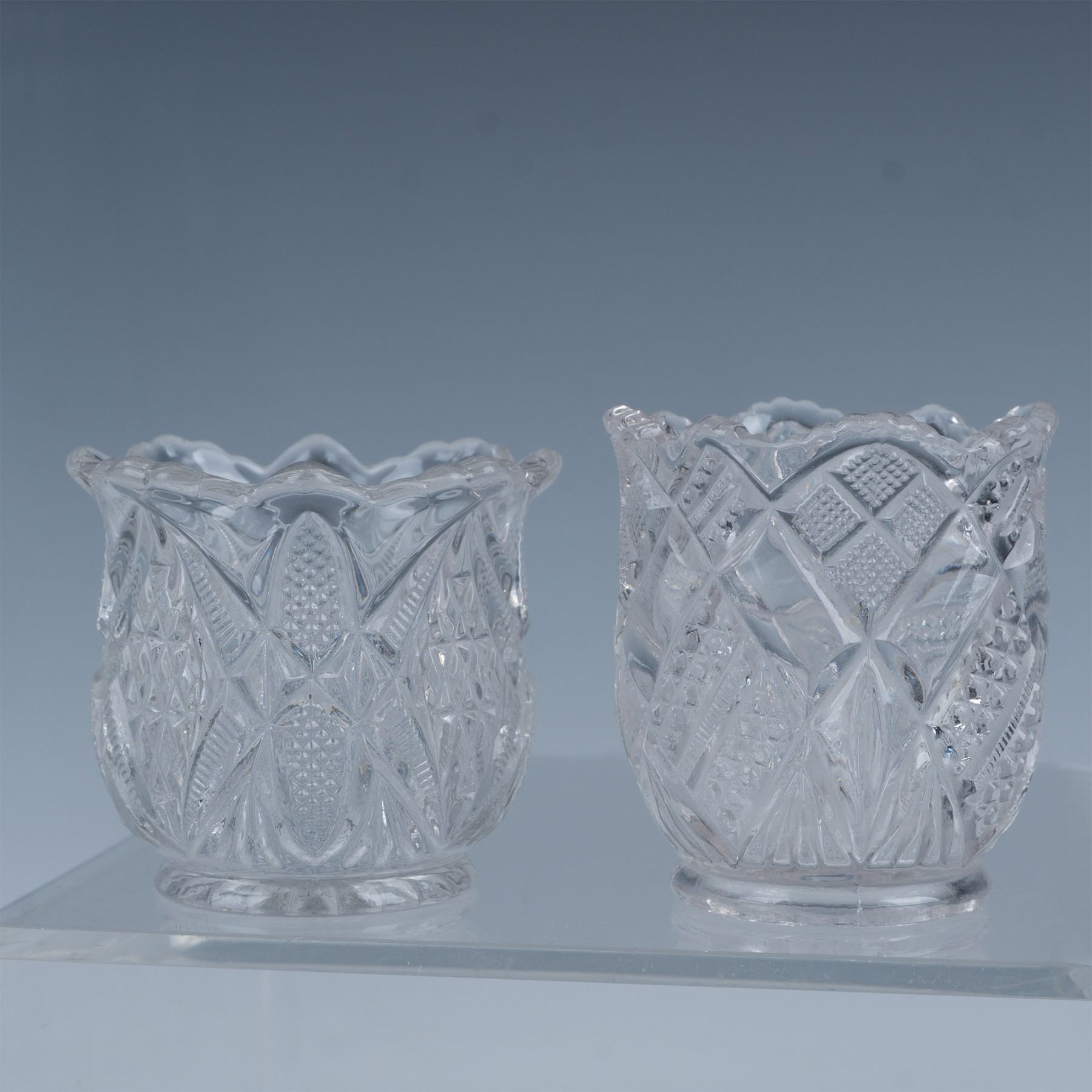 6pc Pattern Glass Toothpick Holders, Tulip Shaped