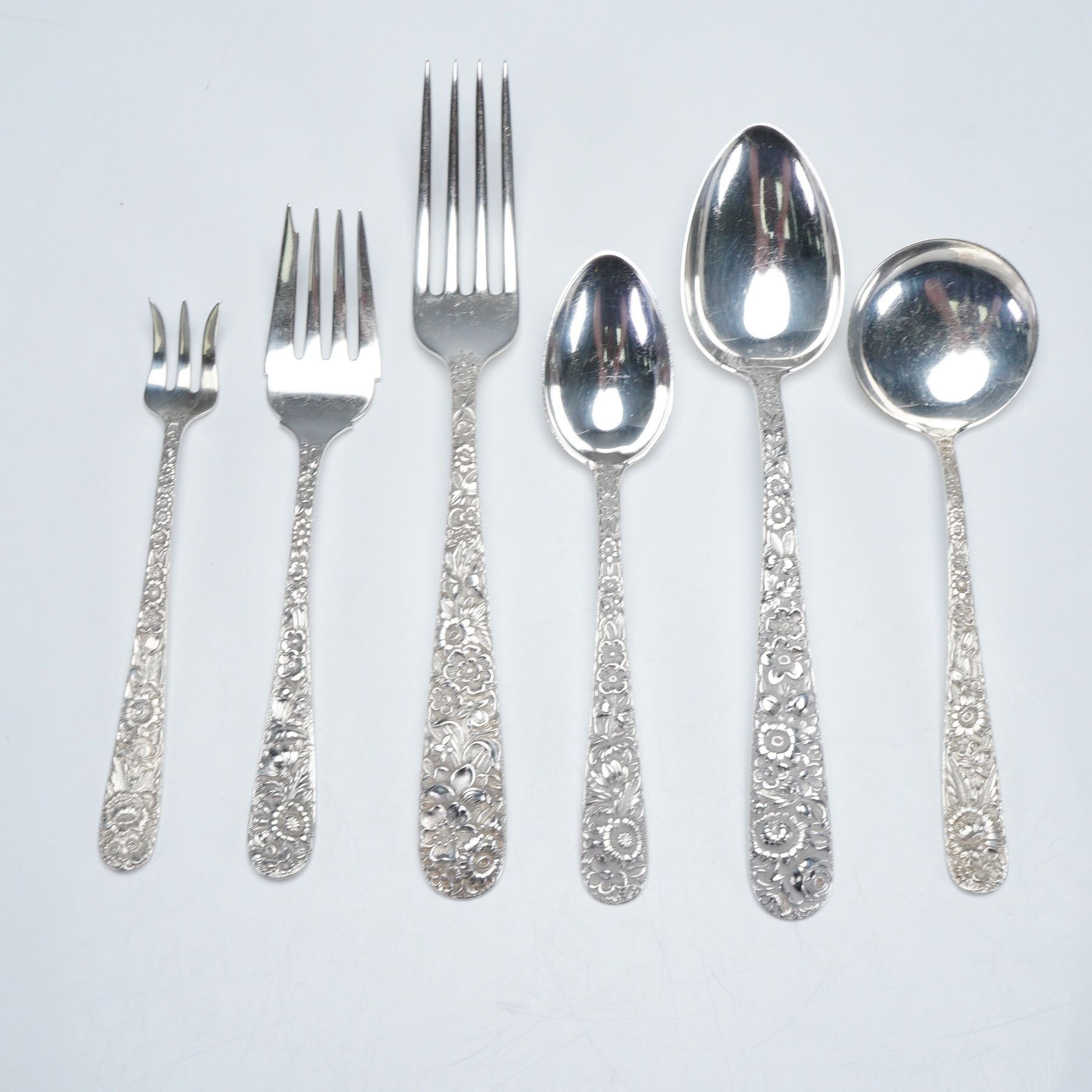 6pc S. Kirk & Son Sterling Silver Flatware, Repousse