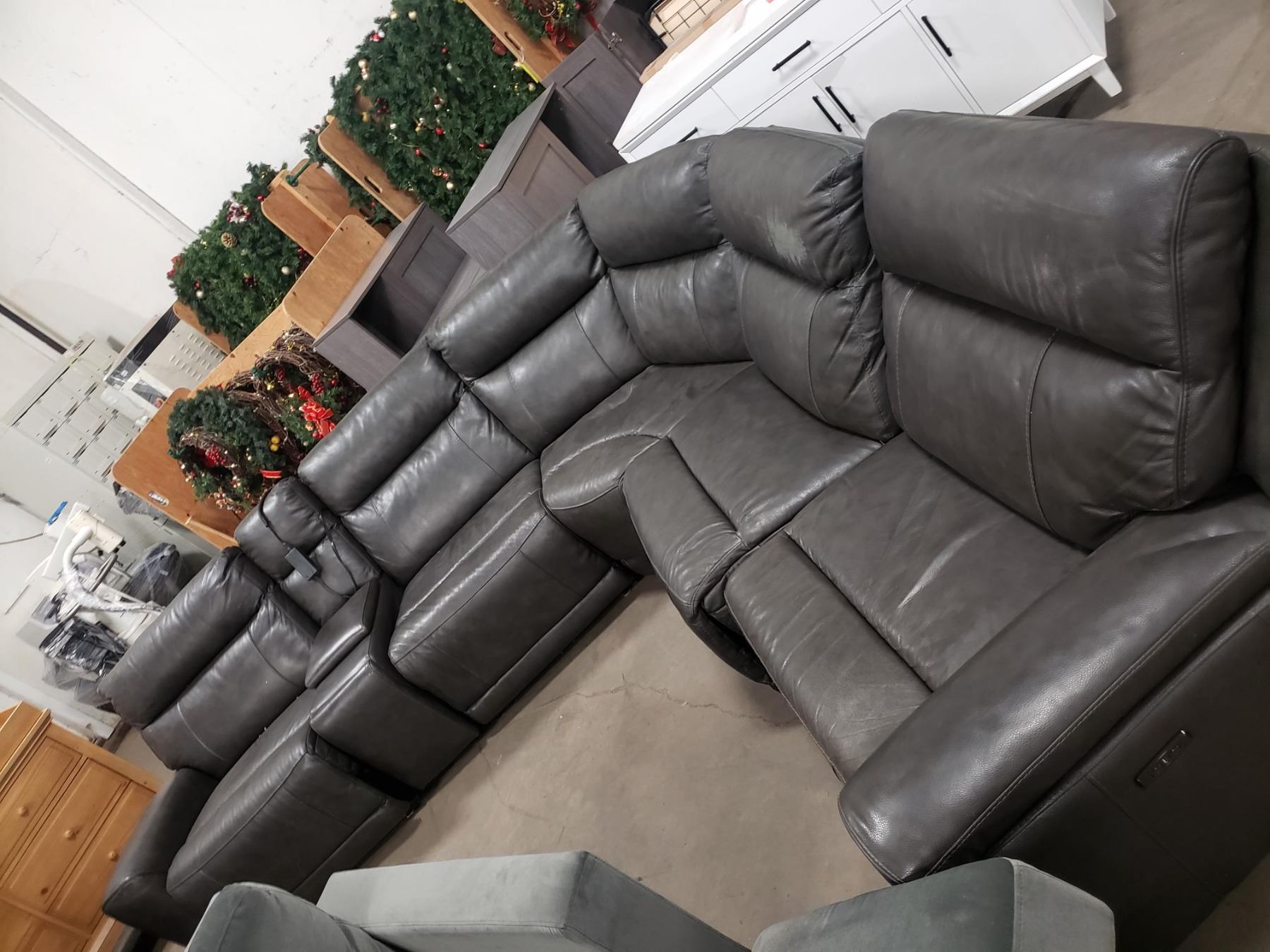 6pc Sectional, some wear as seen in the photos, and missing 1 power boxes for the electric recliner...store returns...like new