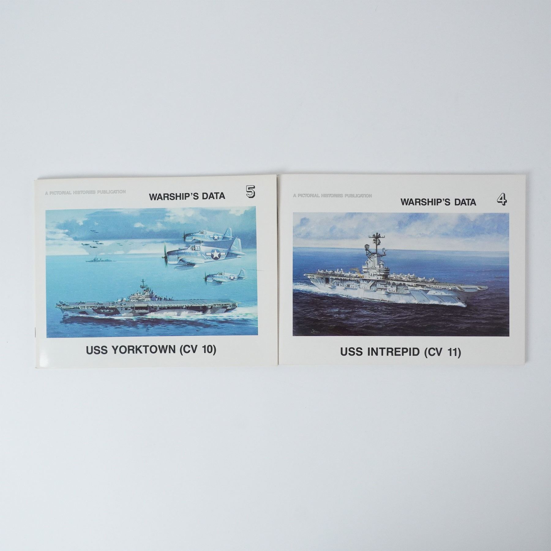 This collection of six softcover books provides detailed naval history and technical insights into World War II warships. The set includes volumes from the "Warship's Data" series and the special edition Destroyer Escorts of World War Two, featuring ship specifications, historical analysis, and illustrations. Titles include Warships Data 1, 2, 3, 4, 5 (USS Yorktown CV-10) and Destroyer Escorts of World War Two. These books are valuable resources for collectors, historians, and model ship enthusiasts, offering in-depth coverage of naval warfare and vessel design. Largest book measures 11"H.