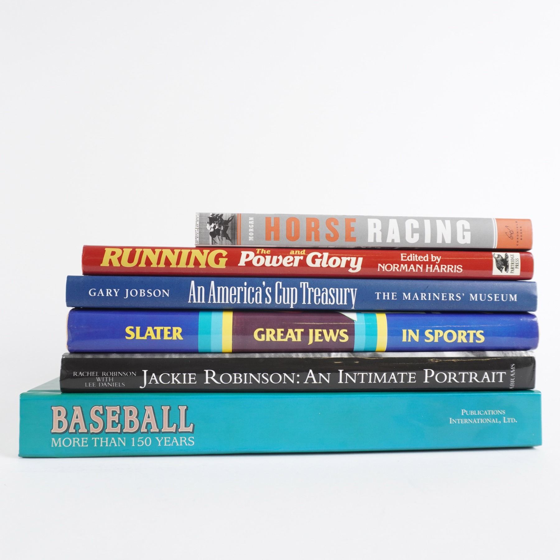 This collection of six hardcover books explores the rich history and triumphs of sports legends across various disciplines. Featuring Jackie Robinson: An Intimate Portrait, Great Jews in Sports, and An Americas Cup Treasury, this set highlights groundbreaking athletes and their remarkable achievements. Horse Racing and Running: The Power and Glory delve into the speed and endurance of champions, while Baseball: More Than 150 Years offers an in-depth look at Americas favorite pastime. Perfect for sports enthusiasts and collectors, this set captures the spirit, history, and impact of athletics across generations. Largest book measures 12.25"H.