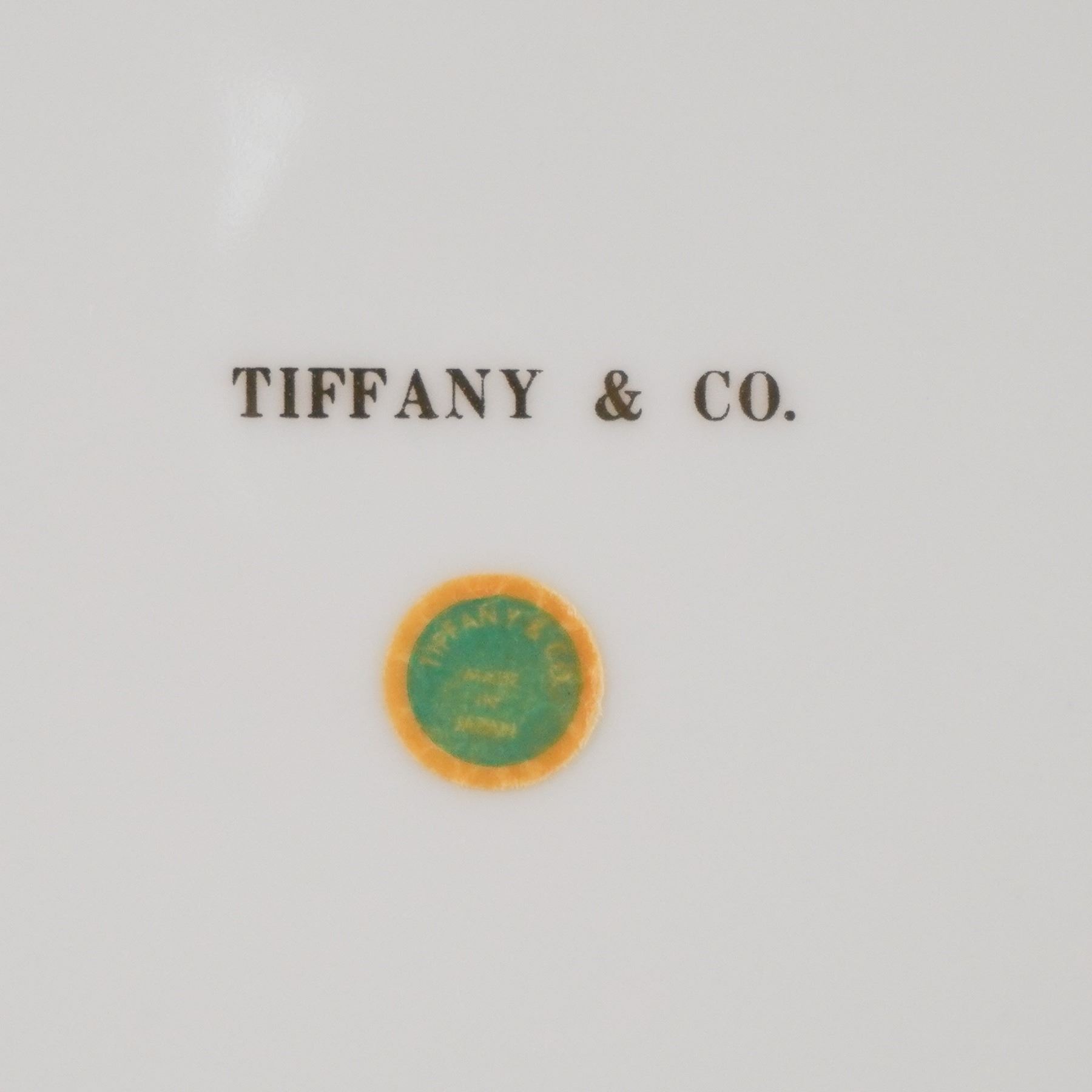 A 6-piece set of elegant porcelain charger plates by Tiffany & Co., designed in a classic, minimalist white. Each plate measures 12.25" in diameter, making them ideal for use as charger plates beneath standard dinnerware in a formal table setting. The backs are marked with the Tiffany & Co. hallmark and a green and gold circular stamp indicating Japanese manufacture. With their clean lines and refined aesthetic, these chargers embody the timeless sophistication of Tiffany & Co.