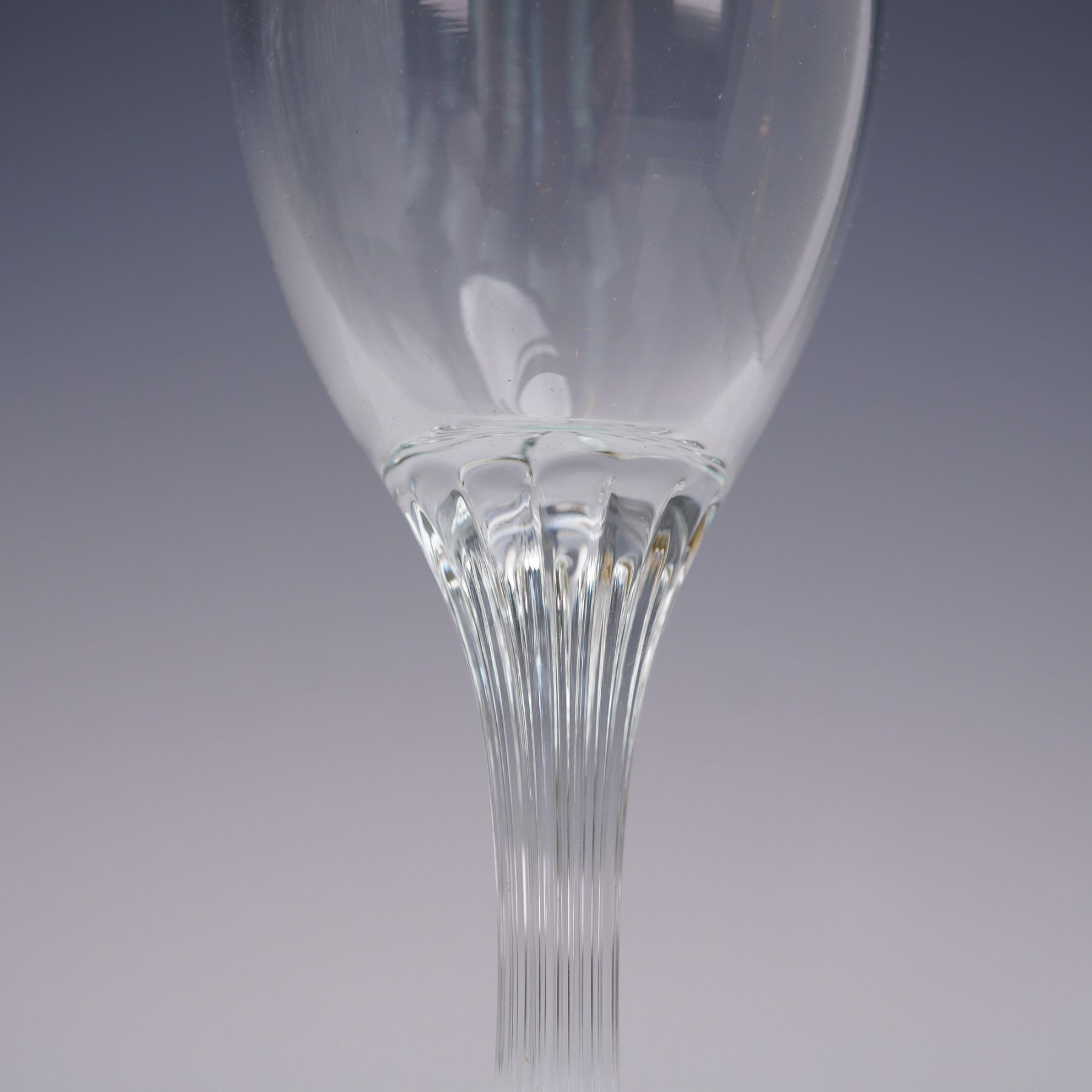 Set of six Valencia champagne flutes, each hand decorated with a 24 karat gold trim. The flutes feature a slender bowl and elegant stem design, ideal for toasting and special occasions. Each glass retains its original Valencia label. Includes the original box, which 15.25"L x 8.25"W x 2.75"H. Each glass measures 7.5"H. measures