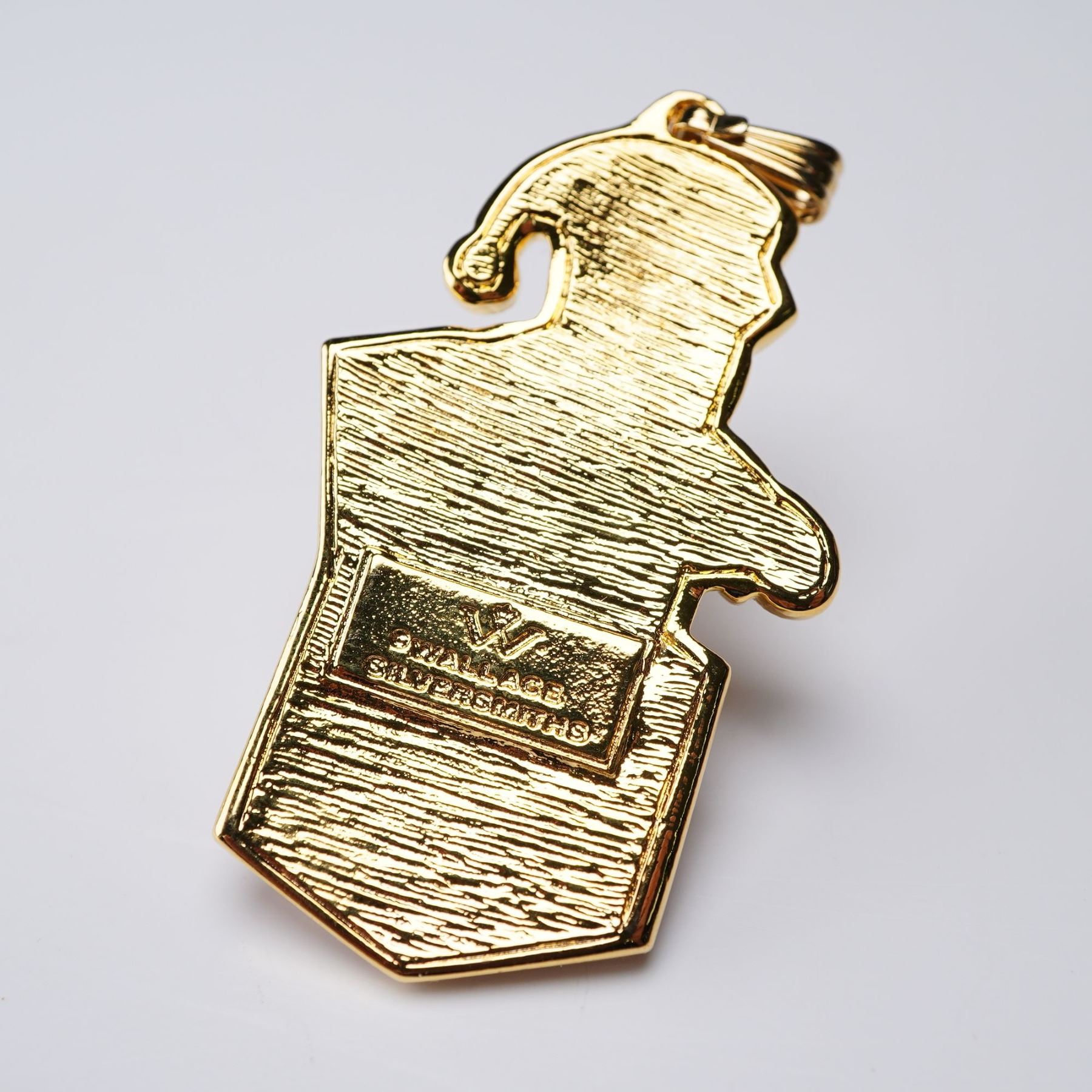 A delightful ensemble of six silver toned and gold plated charms, each designed in colorful enameled. The collection includes characters such as Santa, with Bags of Toy Mrs. Claus, Boy Skater, Angel, Soldier, and Jack In the Box. These adorable charms can be use as necklace pendants, tree ornaments, or on a special gift. Wallace Silversmiths backstamp. These items have their original boxes.