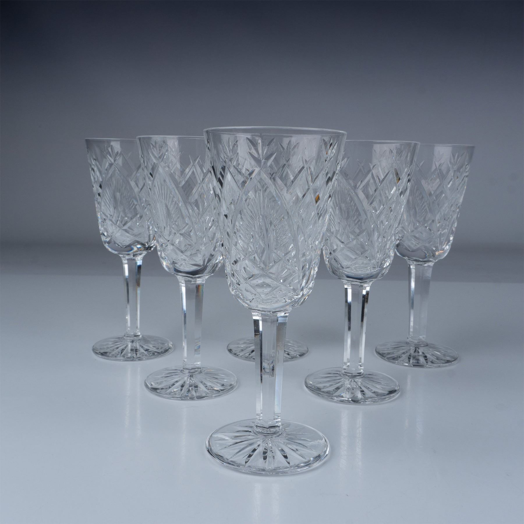This elegant set of 6 Waterford Crystal sherry glasses features the iconic Lismore pattern, renowned for its intricate diamond and wedge cuts. The Lismore pattern, first introduced in 1952, is distinguished by vertical cuts forming a quilted diamond design, with a starburst pattern on the base. These glasses are an exquisite addition to any collection, ideal for both formal and casual occasions, elevating the enjoyment of fine drinks. Waterford marking.