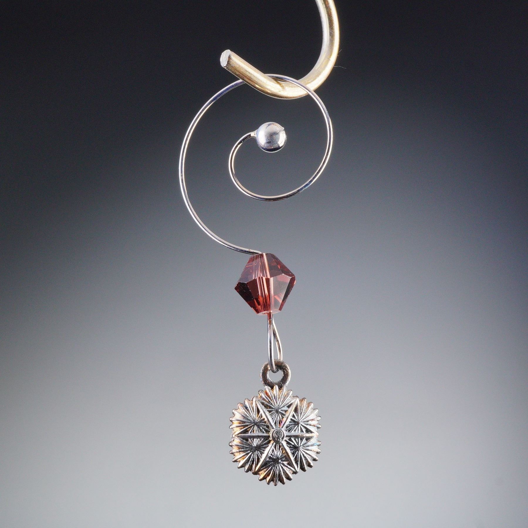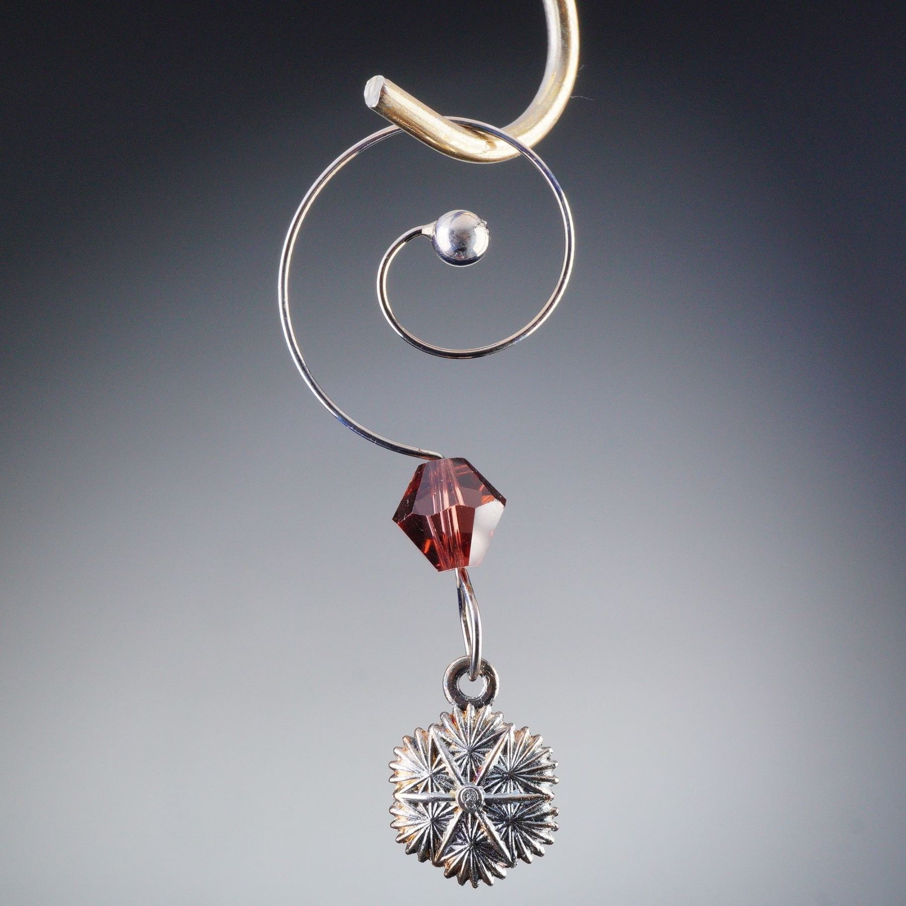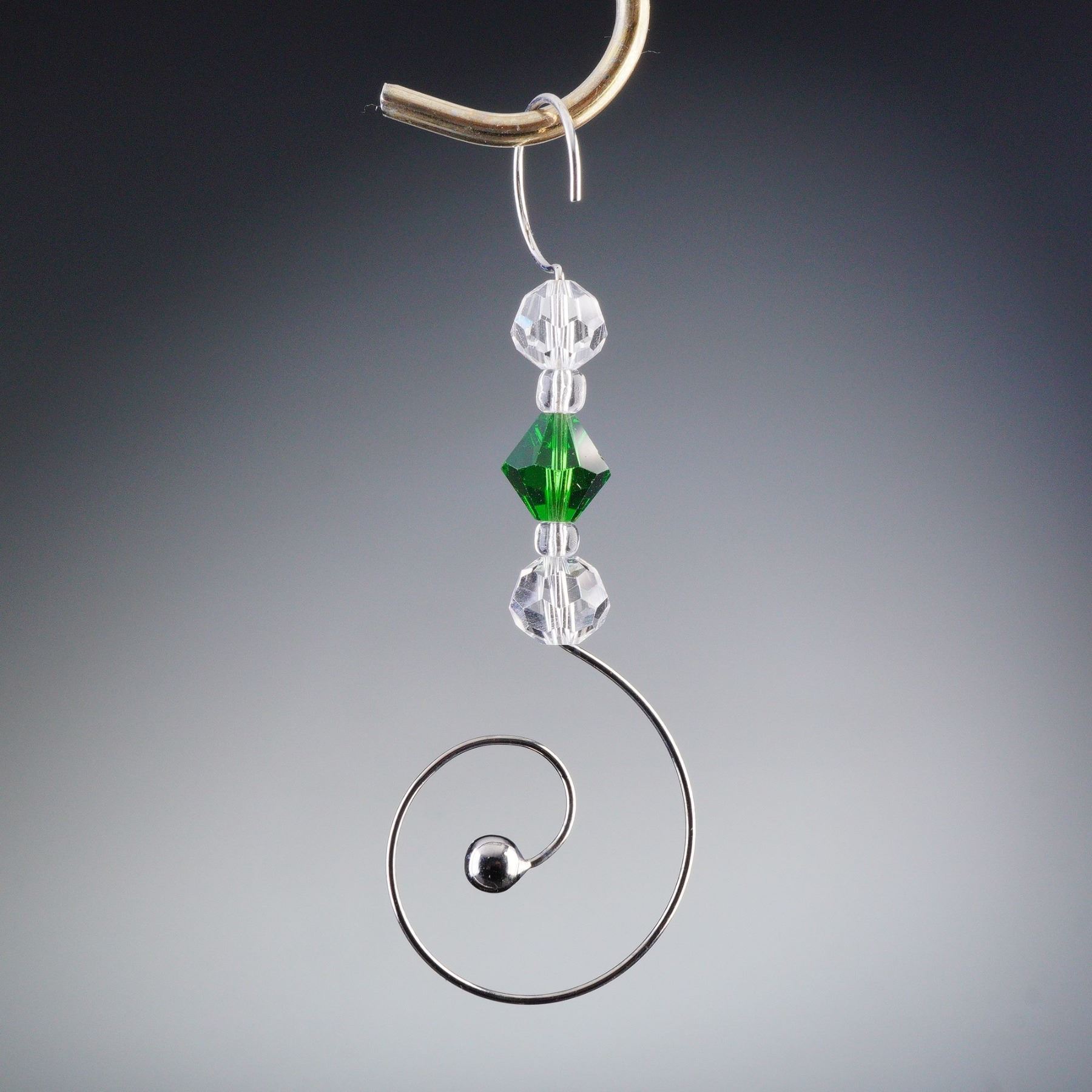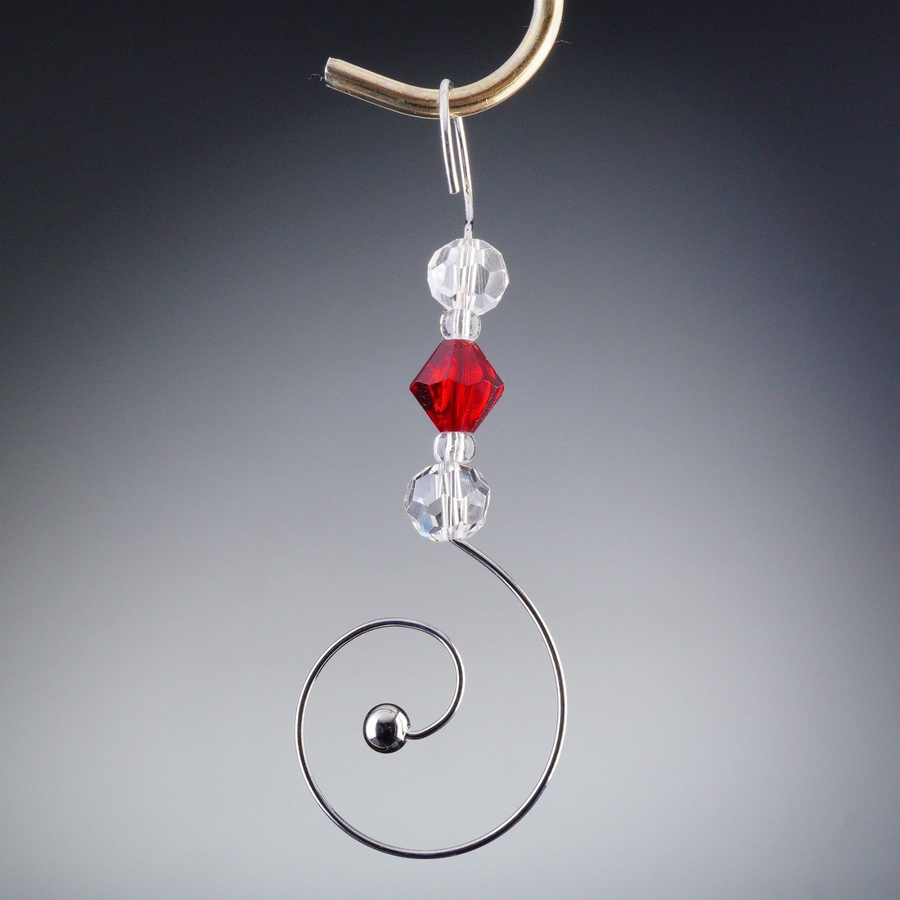 Enhancer sets featuring elegantly coiled silver-tone hangers accented with faceted crystal beads in a range of vibrant hues including ruby red, emerald green, sapphire blue, topaz, and aquamarine. Several enhancers are finished with finely detailed silver-tone snowflake charms that glisten beneath the colored crystal, while others are adorned with clear and colored faceted beads arranged in balanced sequences. Each enhancer showcases the refined craftsmanship characteristic of Waterford Crystal and is presented in original red and gray fitted boxes bearing the Waterford logo.