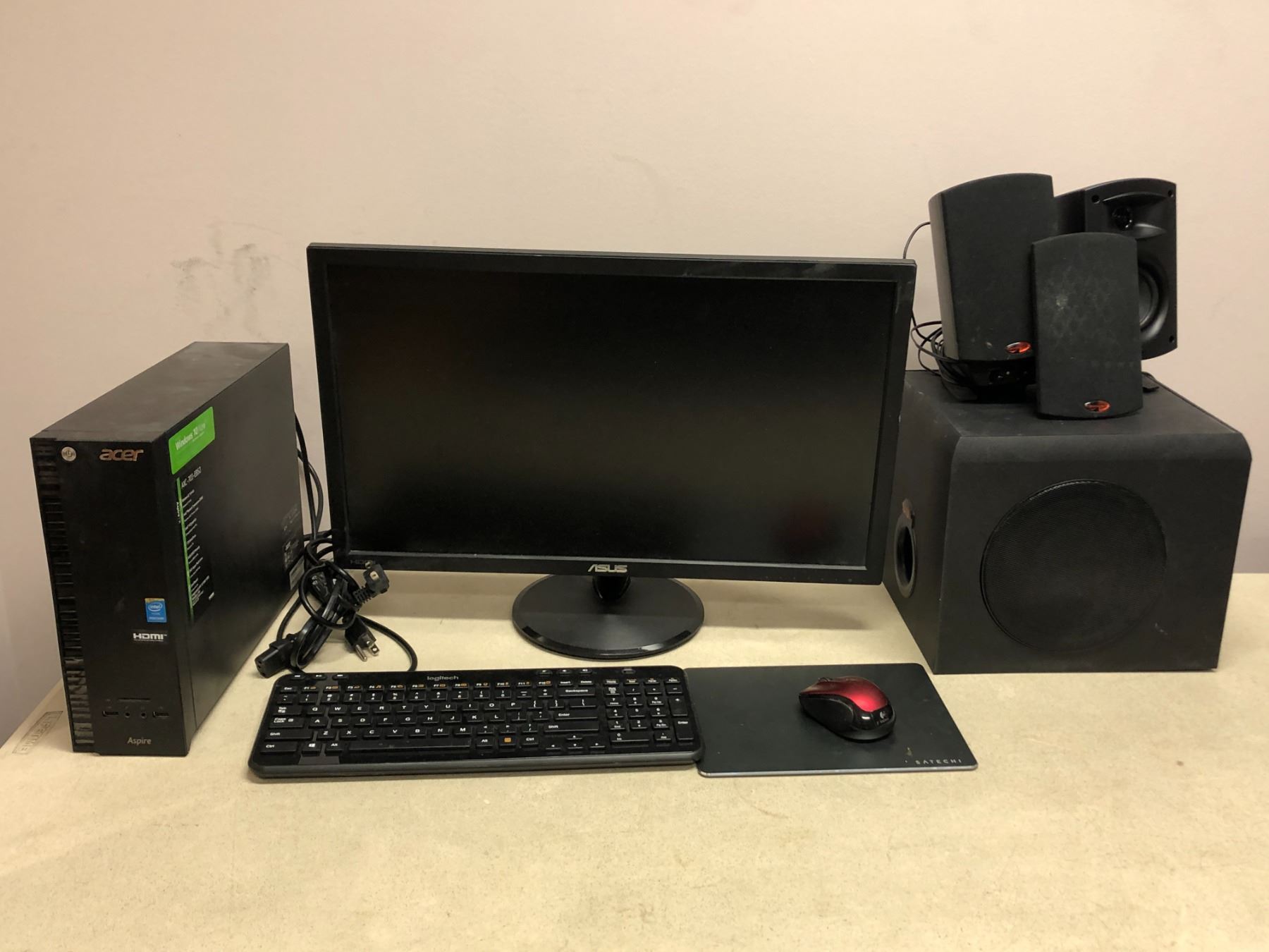 6pc workstation - includes Acer Aspire PC/ Logitech wireless keyboard & mouse set/ Asus monitor & Klipsch speaker system