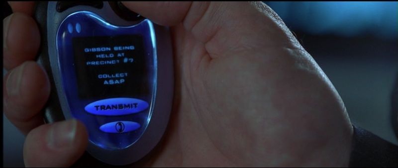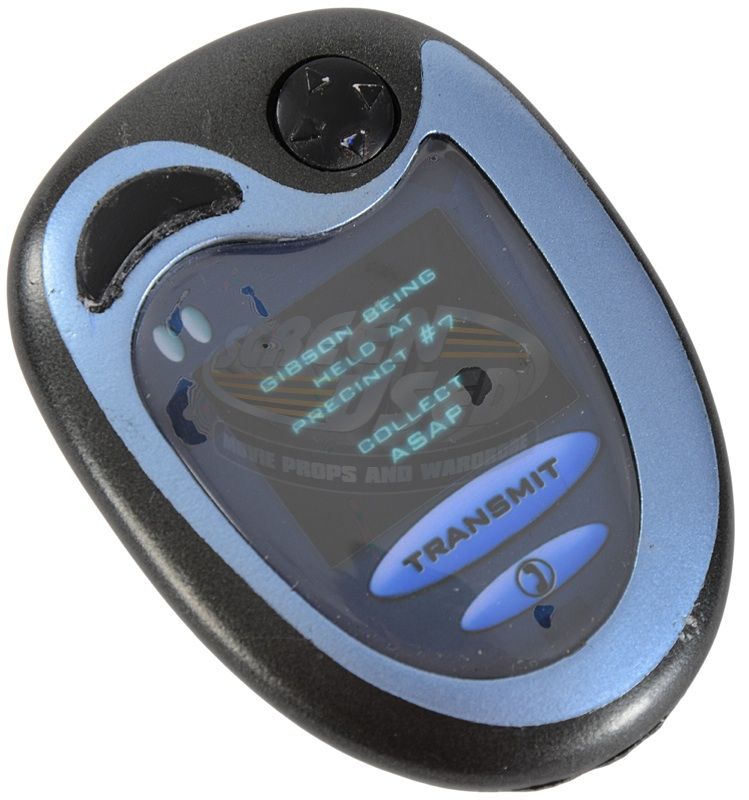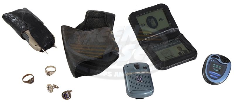 (Columbia Pictures, 2000) These props were acquired by the production for use by Michael Rooker as "Robert Marshall". The set includes a custom made light-up Millennium Security ID (One of the wires on the ID has been cut and has not been tested for functionality), a custom made leather gun holster, a custom made light-up beeper with information on Adam Gibson being held at the police station on the display (this prop still lights up), a prop taser with leather holster, a main control device with Replacement Technologies logo attached to the front, two metal rings, each with the Replacement Technologies logo and a pair of cufflinks, each with the Replacement Technologies logo. Minor wear from use on the props is present.