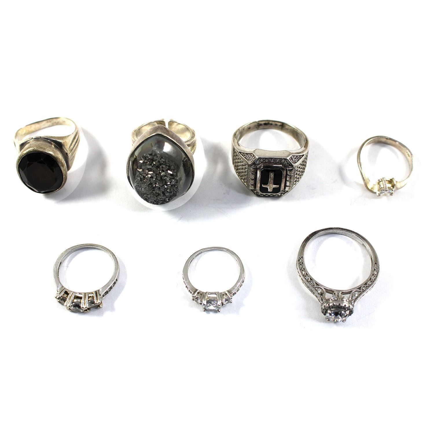 6x Assorted .925 Silver Rings with Various Embellishments Gross Weight: 48.6g. 6pcs.