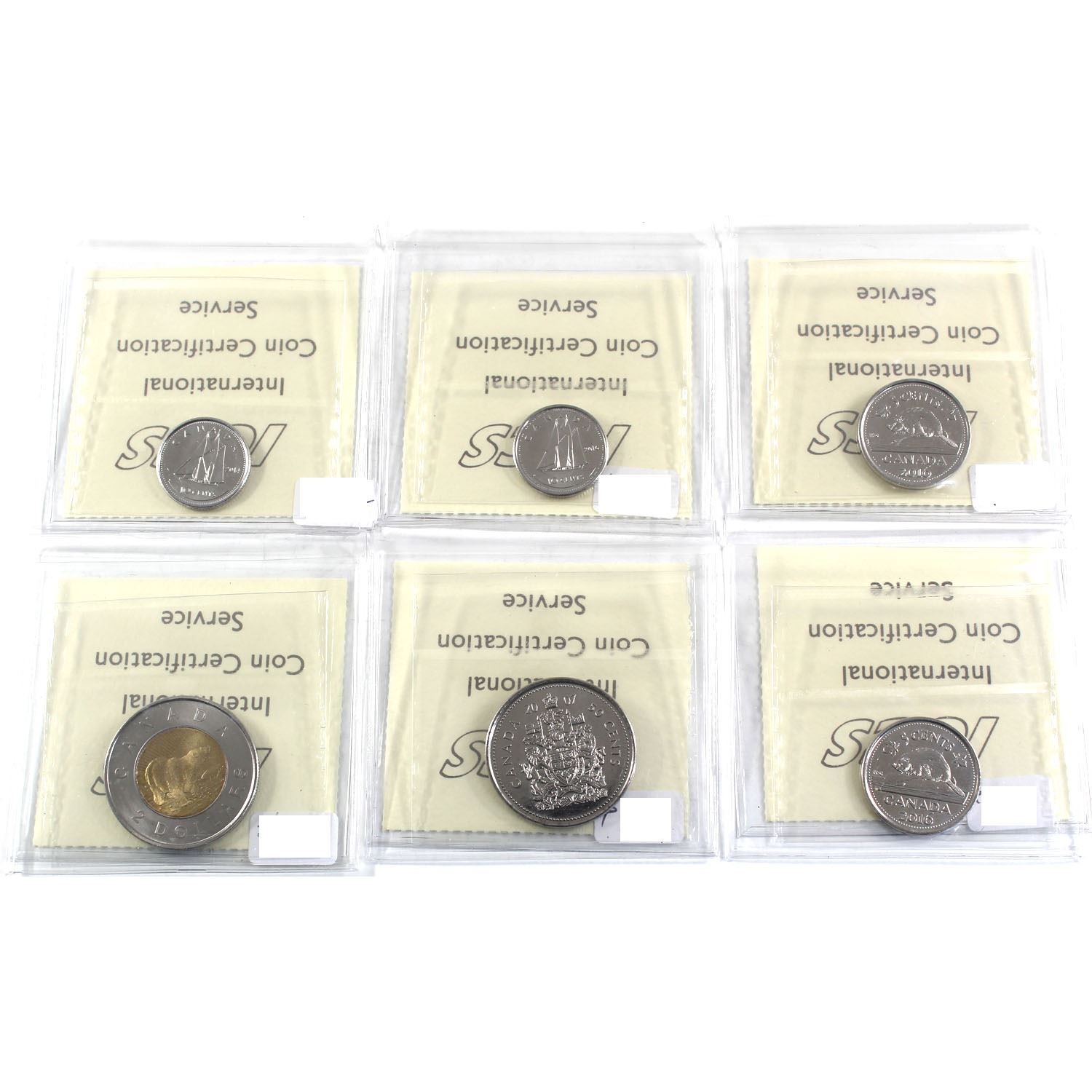 6x ICCS Certified Coins: 2006 Churchill $2 MS-64, 2007 50c MS-64, 2014 10c MS-65, 2016 5c MS-62, 201