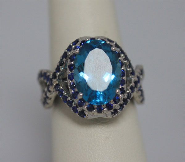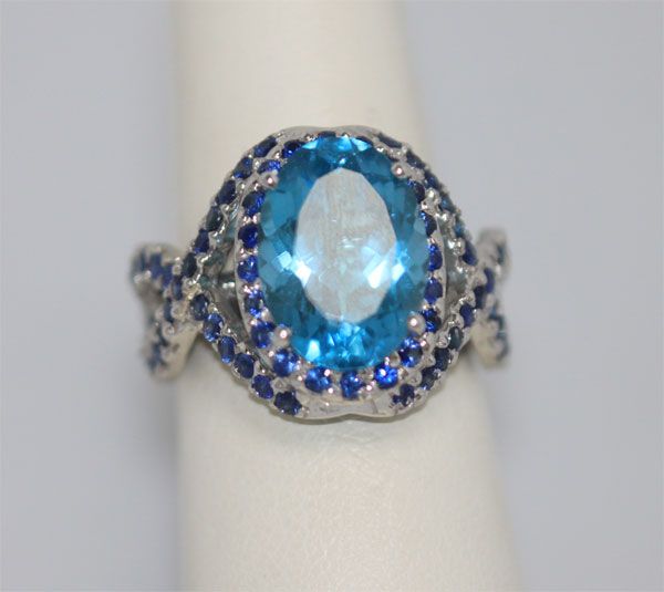 7.0 CTW BLUE TOPAZ AND 1.5 CTW SAPPHIRE .925 STERLING S **|**|** 7.0 CTW BLUE TOPAZ AND 1.5 CTW SAPPHIRE .925 STERLING SILVER RING ; MSRP: $0