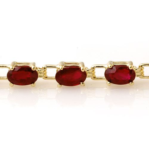7.0 CTW Ruby Bracelet 10K Yellow Gold ---- Luxury Designer Brand Bracelet Appraised Retail Price at $3,400 ---- SKU Number US13452 10k Yellow gold Bracelet Size is 7 Inches, Bracelet measuring approx. 7" x 3/16", weighing in total approx. 7 grams. Made in the USA and is stamped 10k, Main stone 7 carat total weight containing 23 pieces of Mid-Opaque-Deep Red color with AAA quality Oval shape cut Ruby , Stone #2 carat total weight containing pieces of color with quality shape cut