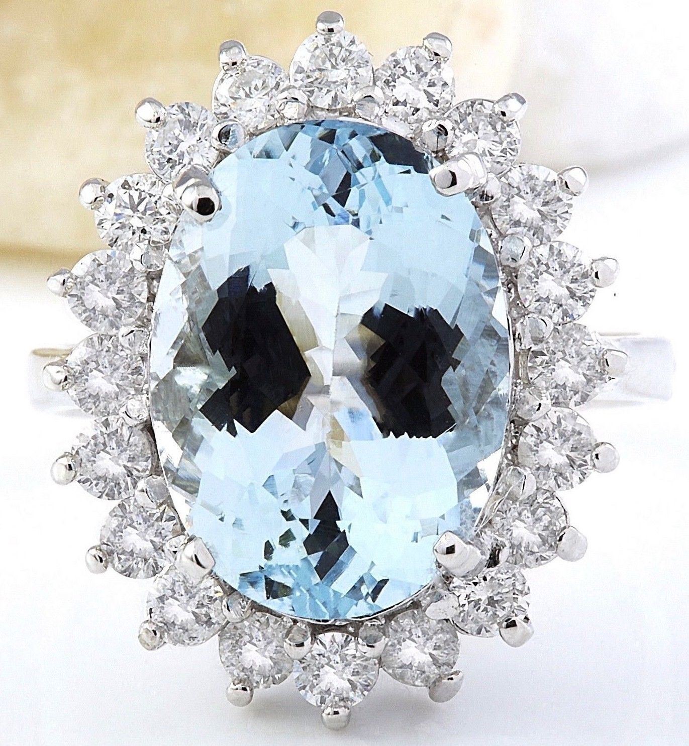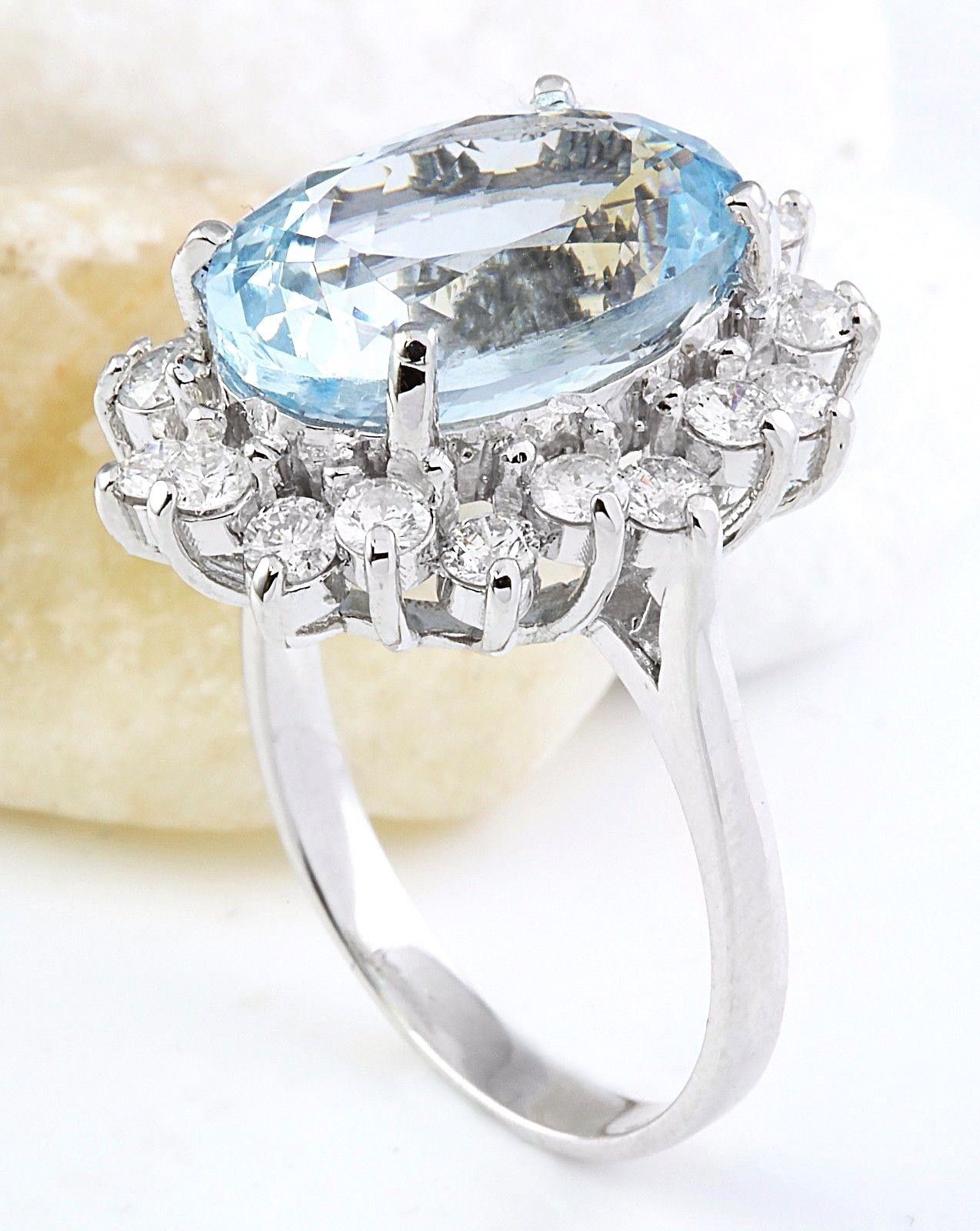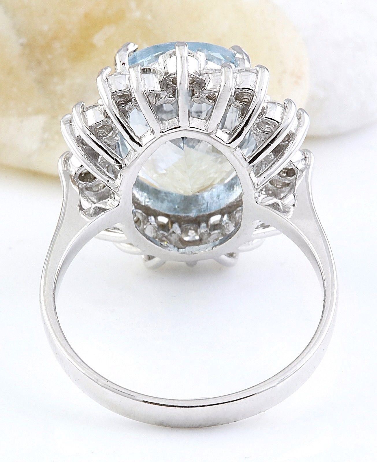 7.00 Carat Natural Aquamarine 14K Solid White Gold Diamond Ring