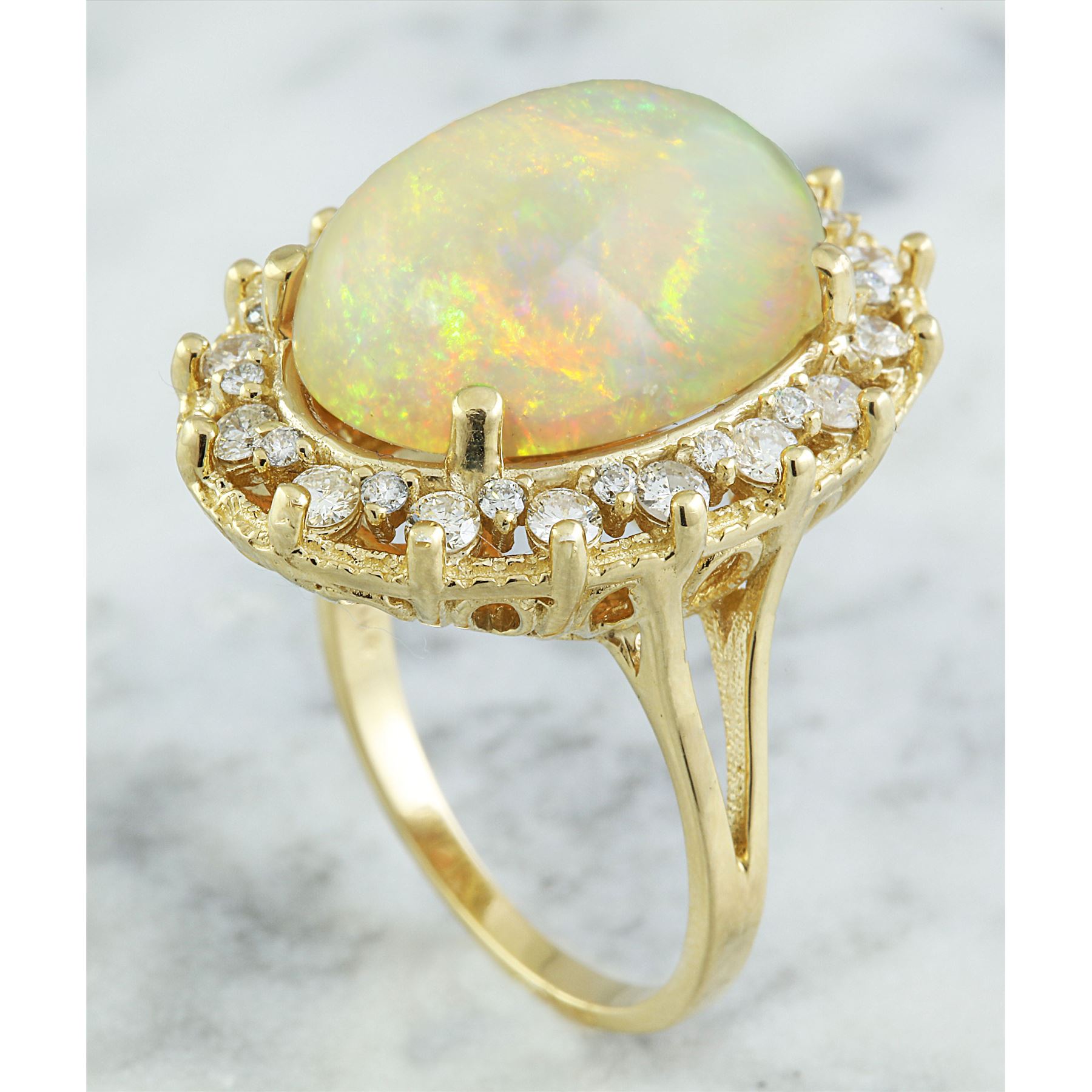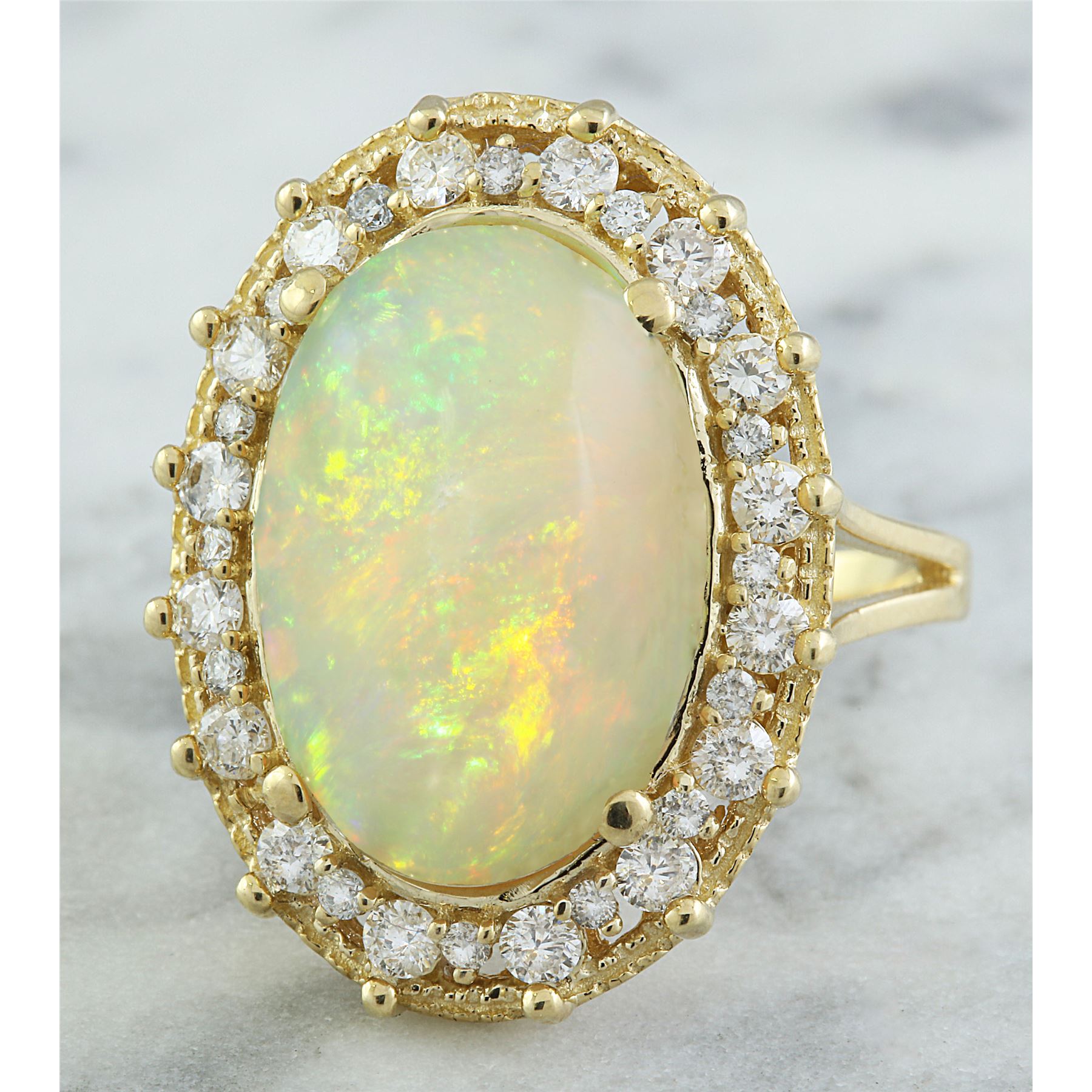 7.00 CTW Opal 18K Yellow Gold Diamond Ring