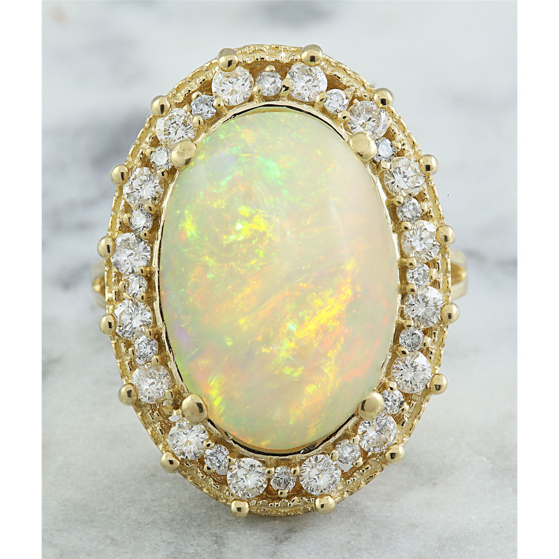 7.00 CTW Opal 18K Yellow Gold Diamond Ring
