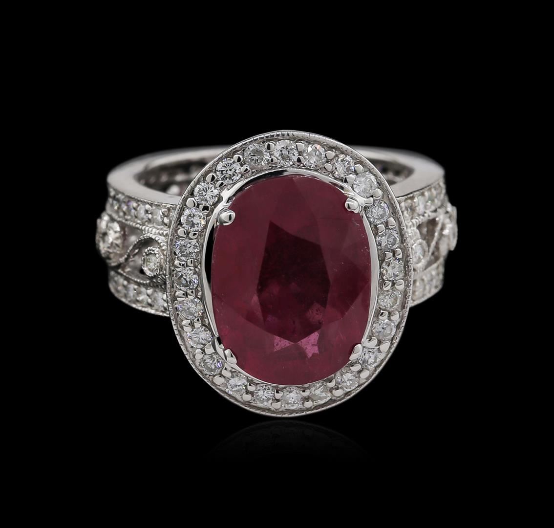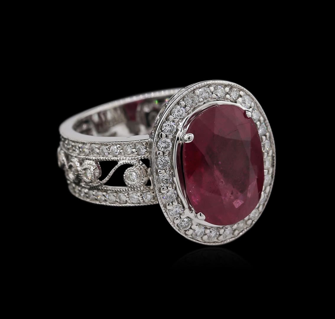 One ring featuring: 14KT white gold weighing 5.80 grams containing one ruby with a total weight of 7.00ct and diamonds with a total weight of 0.80ct.