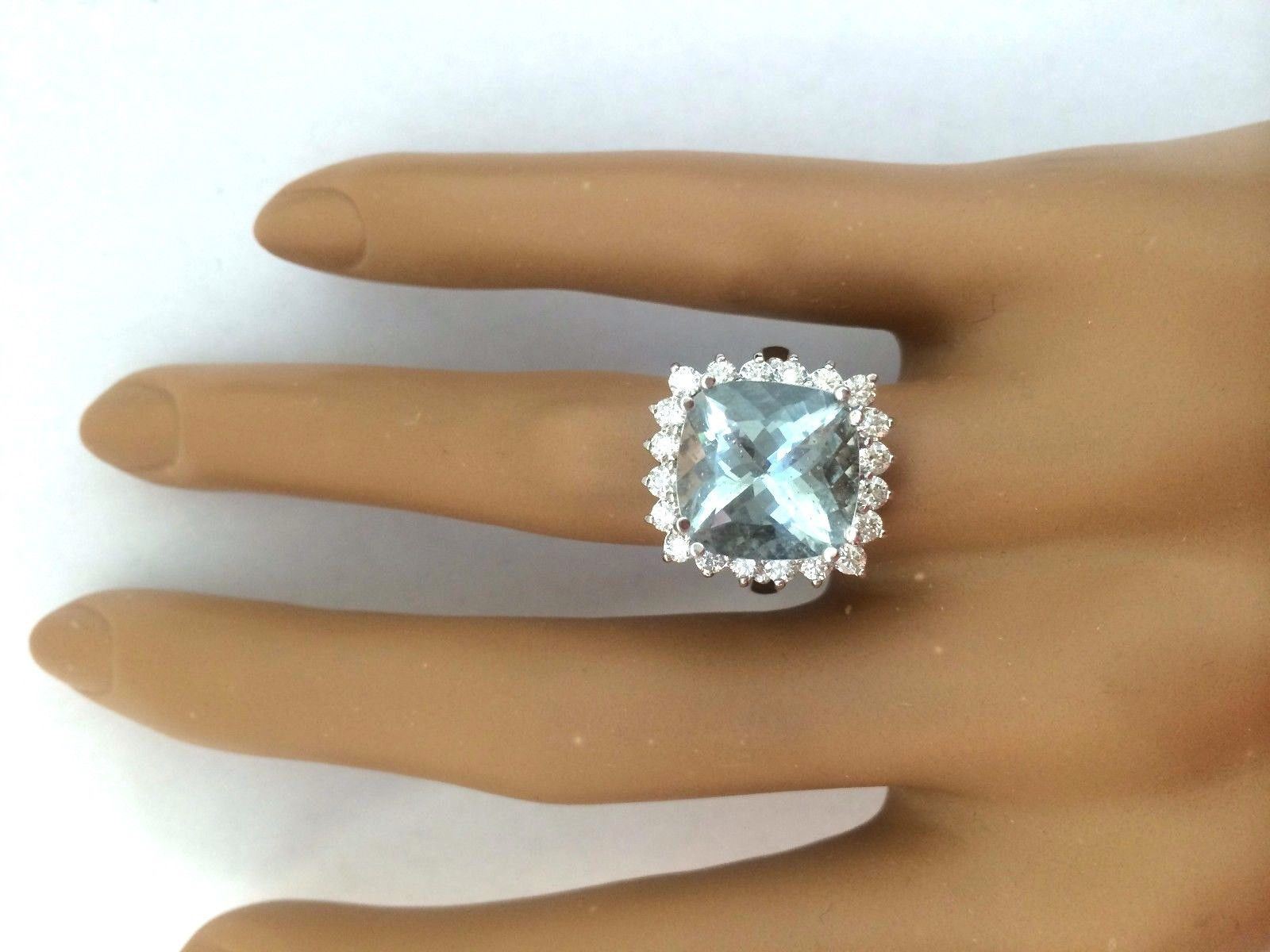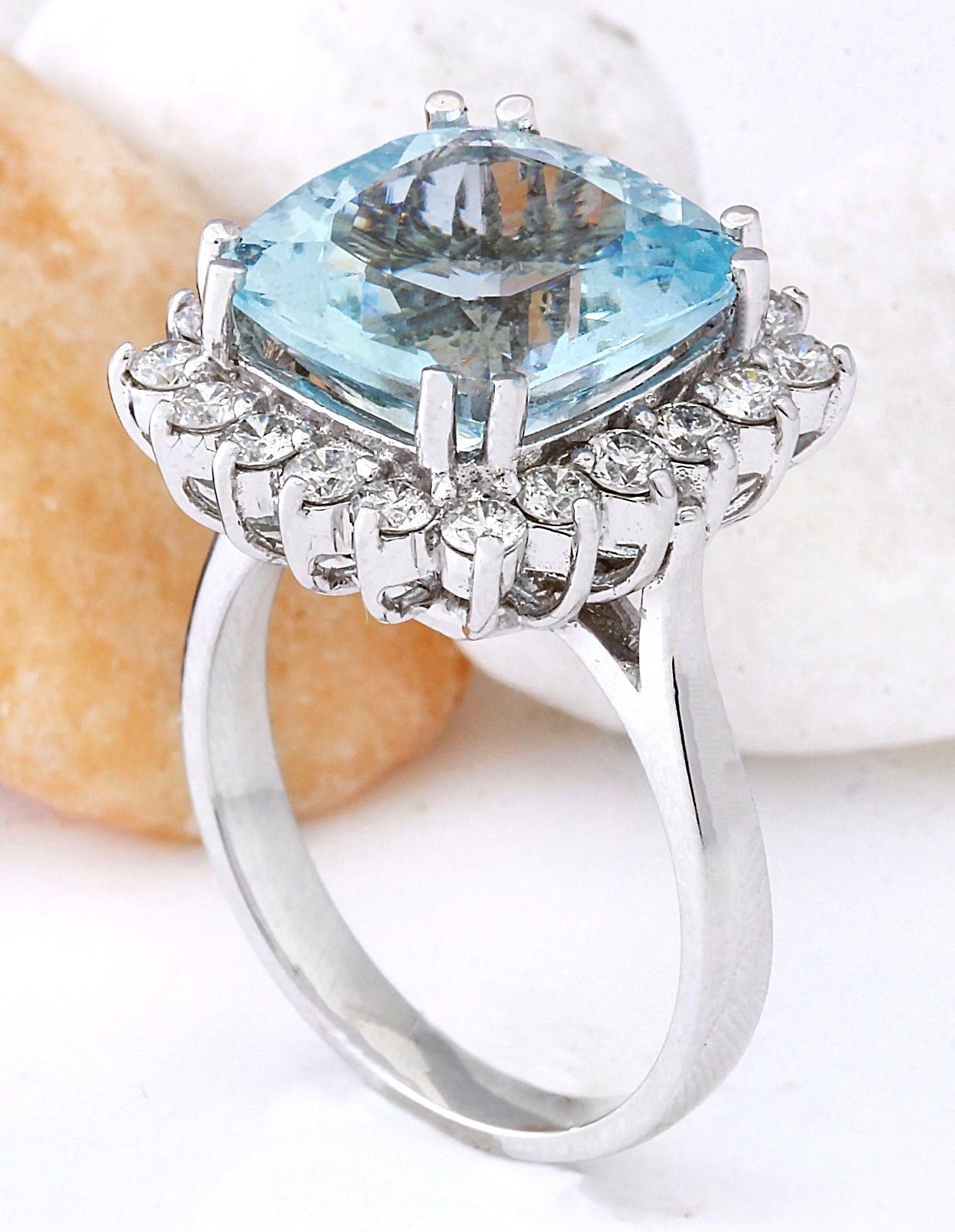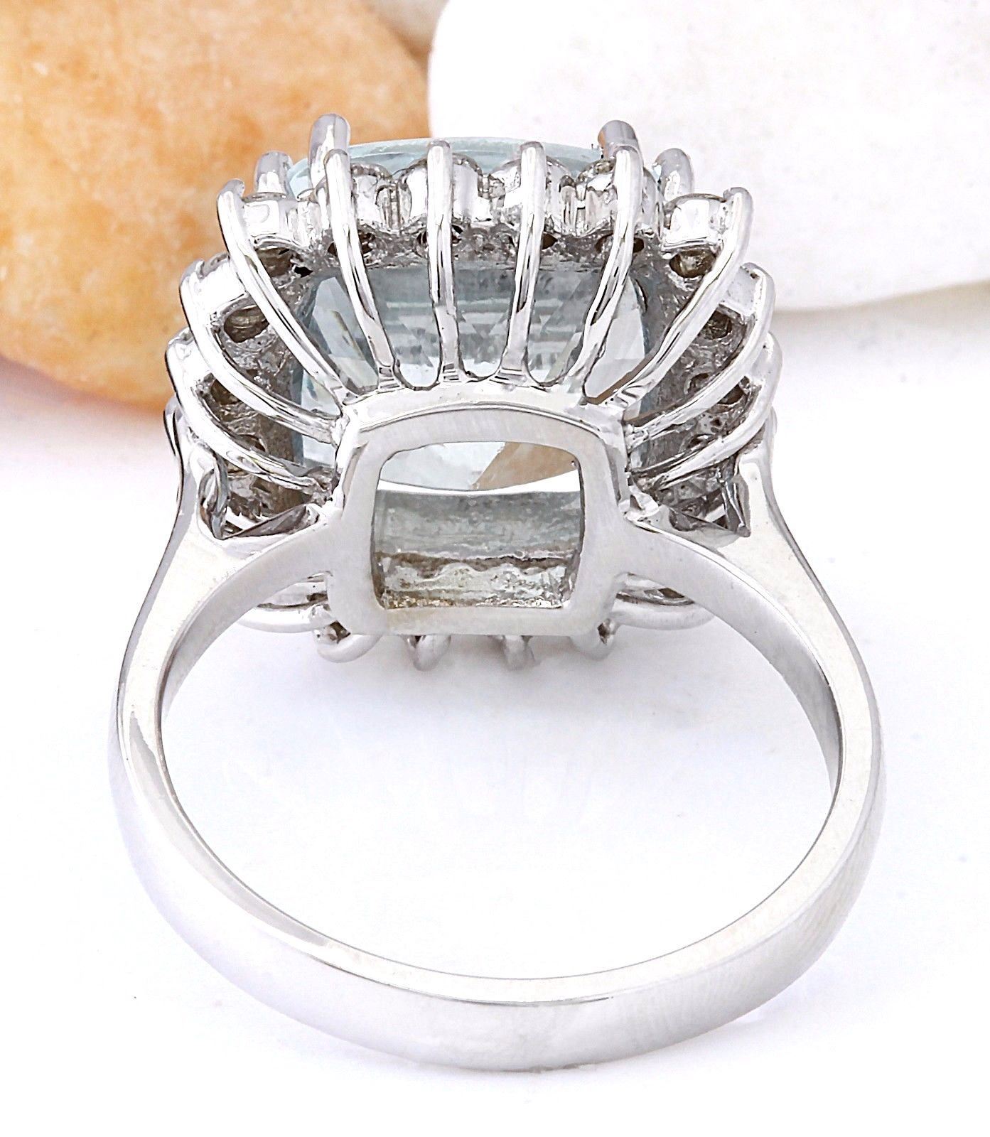 7.01 Carat Natural Aquamarine 18K Solid White Gold Diamond Ring